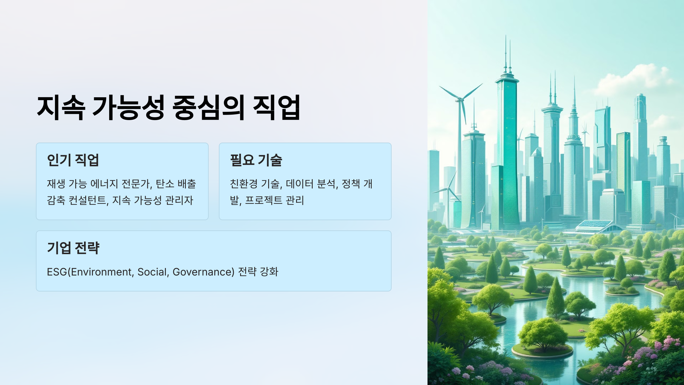 기후 변화와 환경 문제의 부각으로 지속 가능성 중심의 직업이 주목받고 있습니다.
