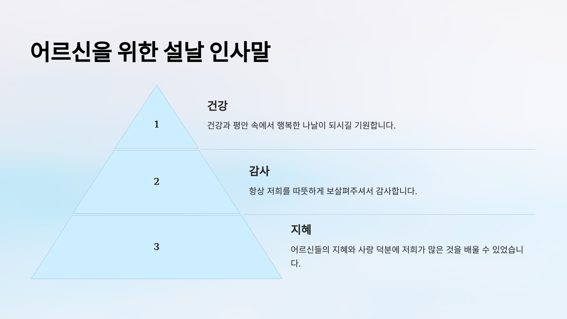 "존경하는 어르신들, 올 한 해도 건강과 평안 속에서 행복한 나날이 되시길 기원합니다. 새해 복 많이 받으세요."