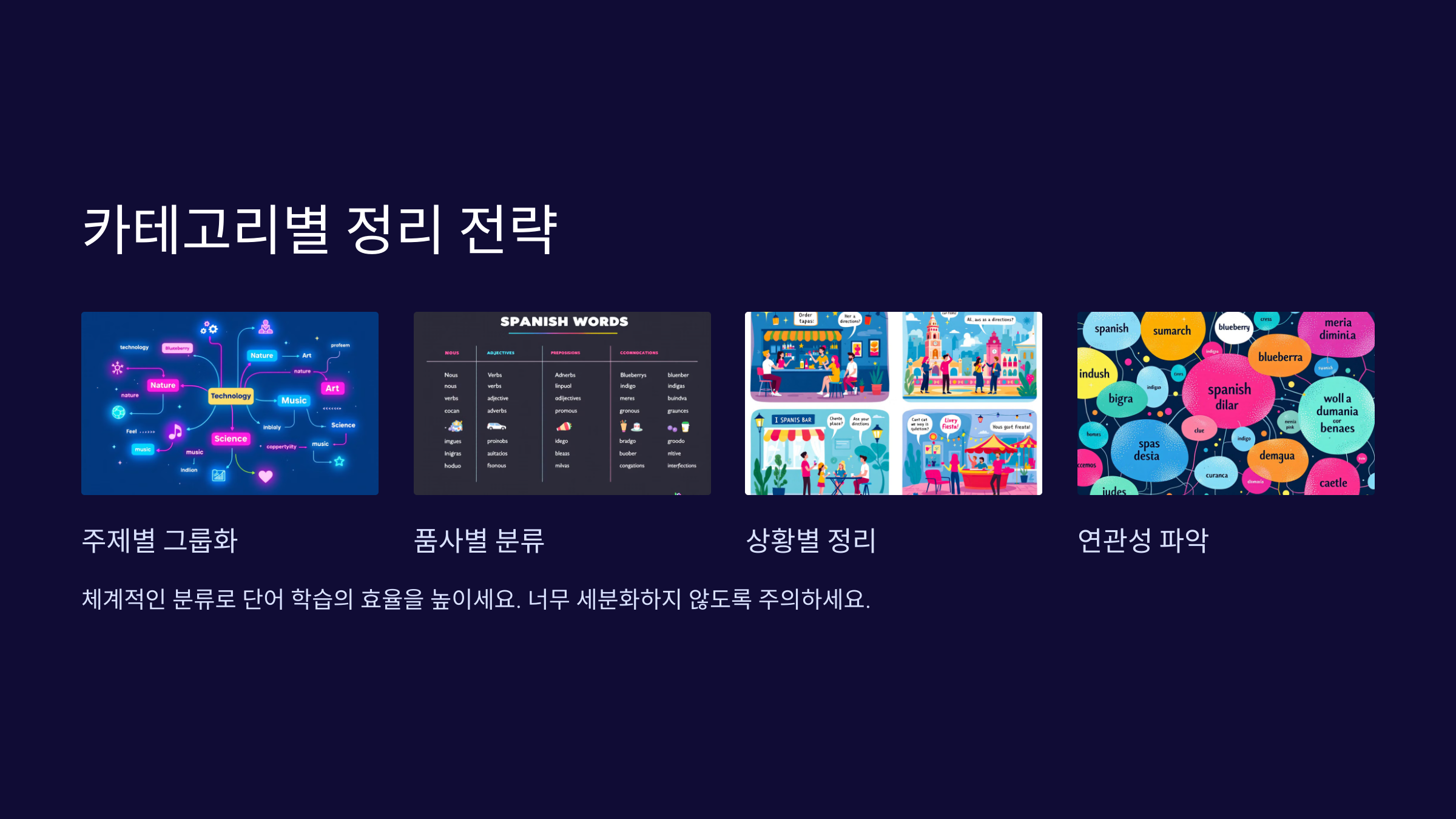 단어 사이의 연관성을 정리해 기억을 강화하세요.