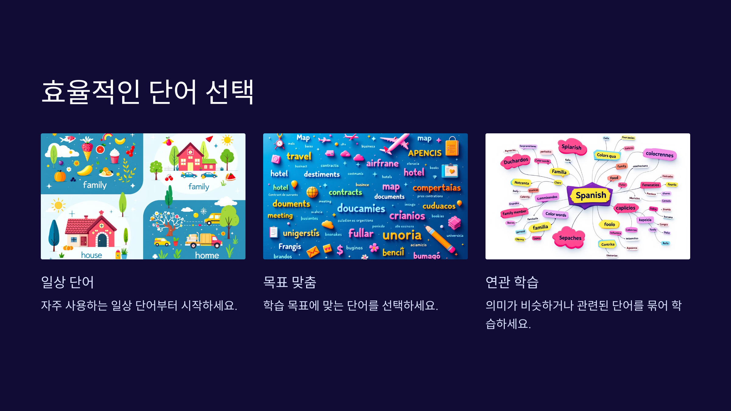 이미지나 그림과 단어를 연결해 기억을 돕습니다.