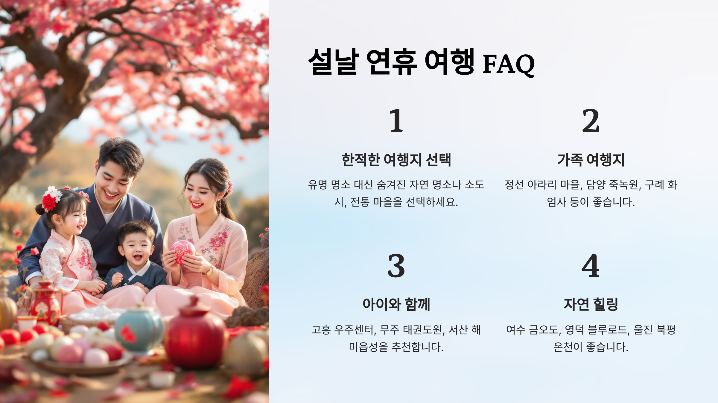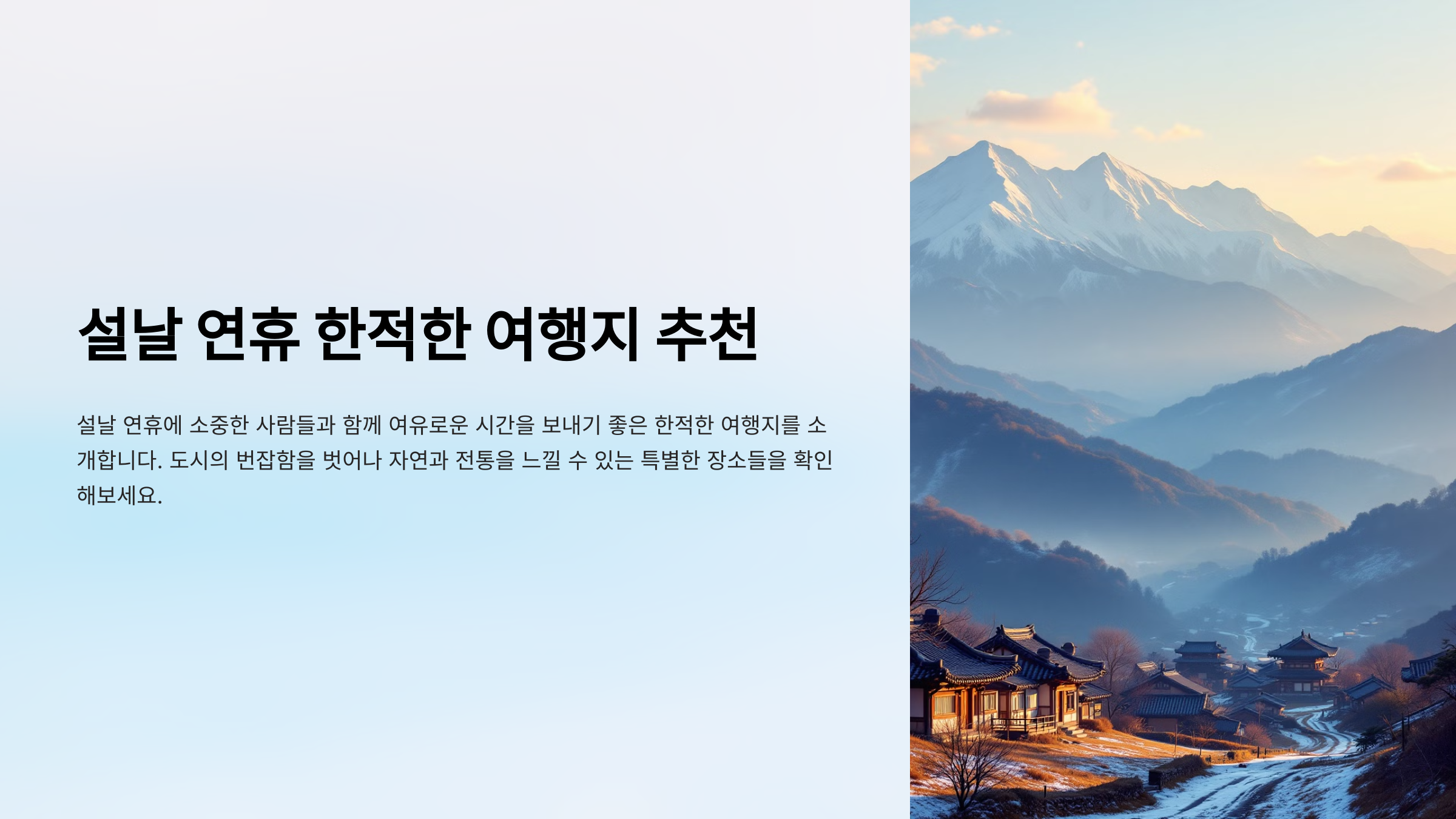 "설날 연휴 동안 자연과 바다를 함께 즐길 수 있는 완벽한 힐링 여행지입니다."