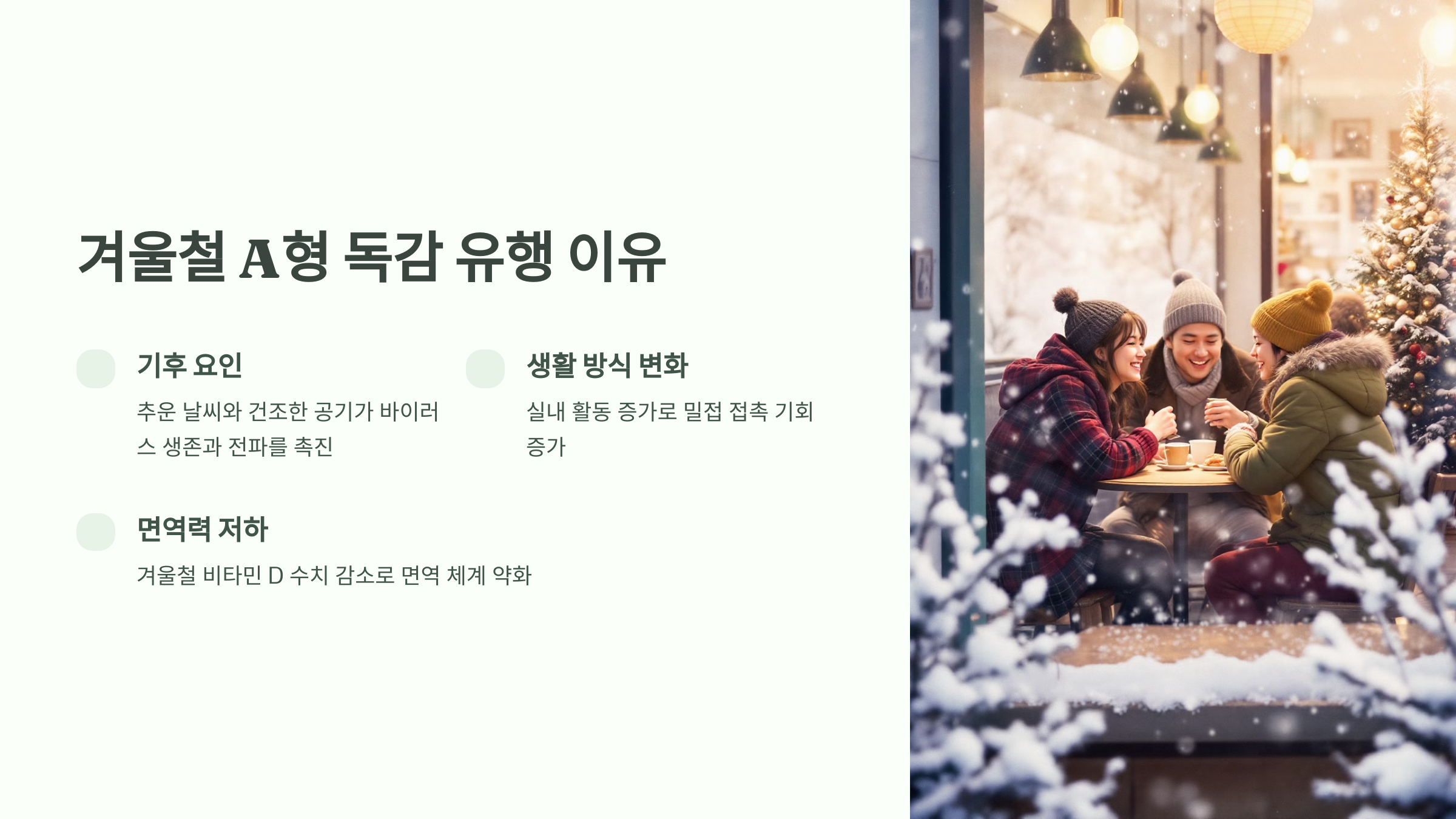 겨울철 A형 독감의 유행은 기후적 요인과 생활 방식의 변화에 큰 영향을 받습니다.