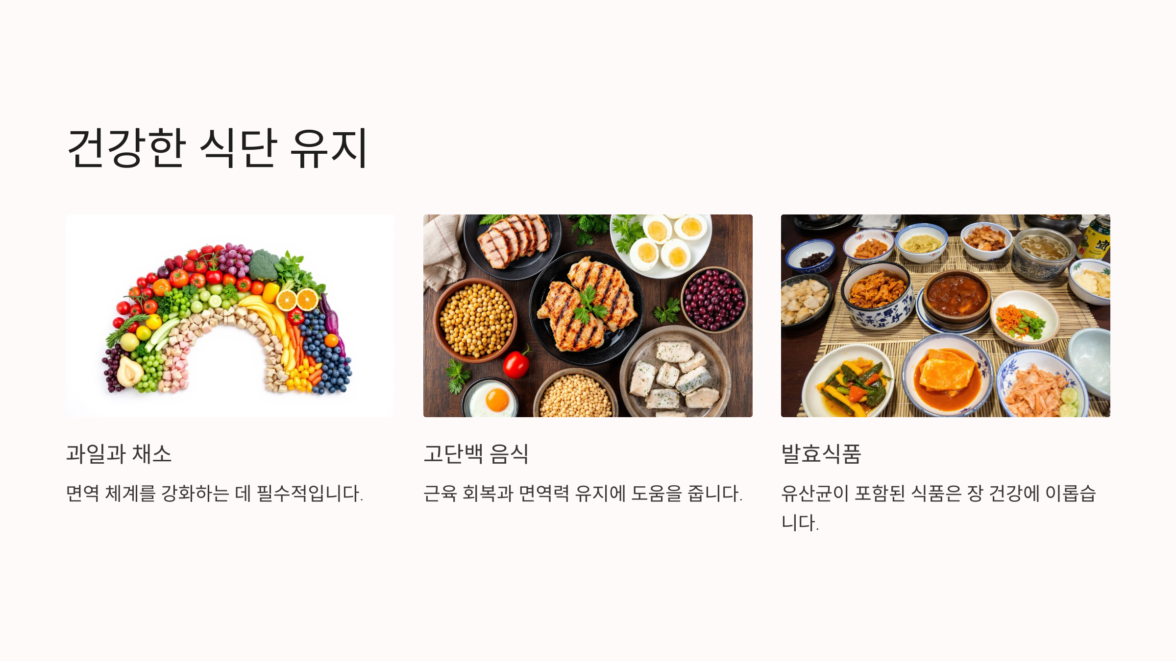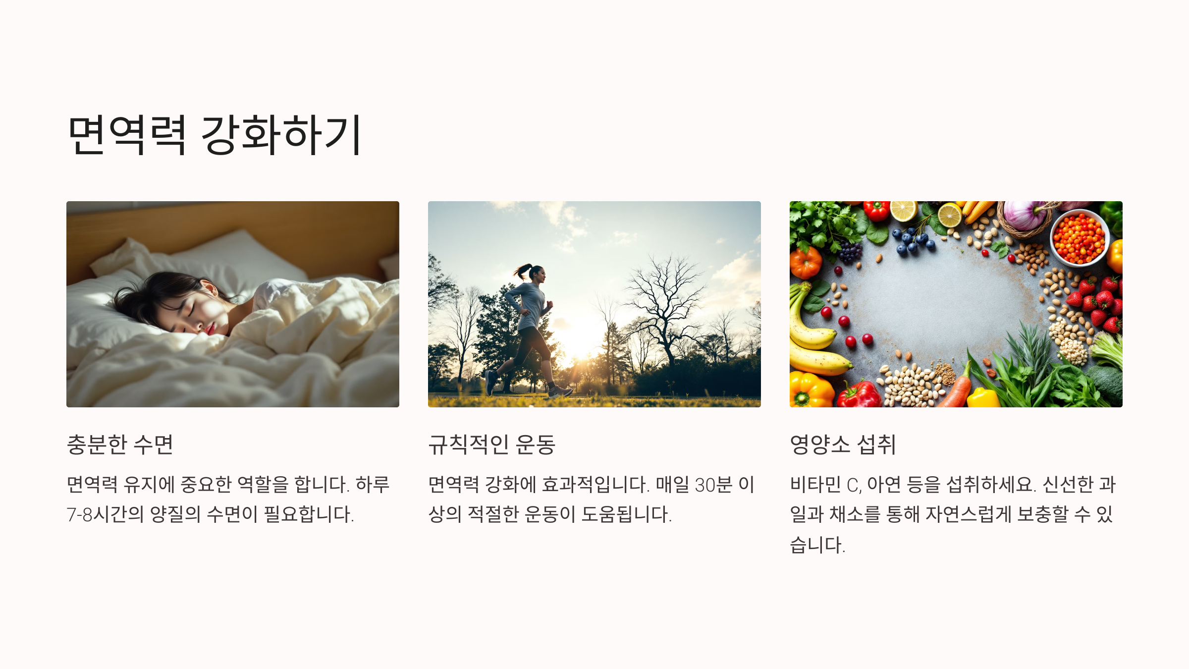 비타민 C, 아연 등 면역력을 높이는 영양소를 섭취하세요.