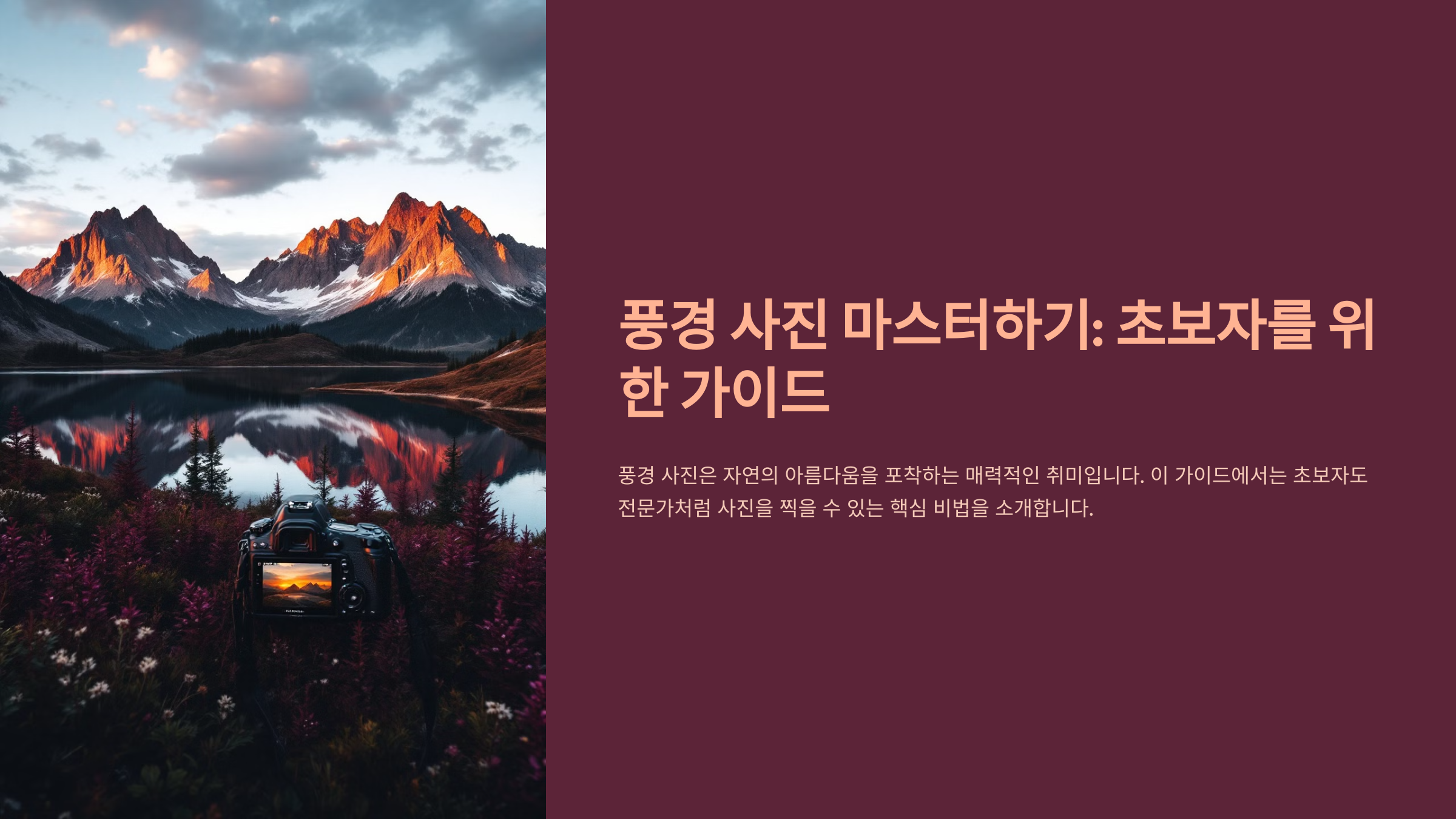 풍경 사진은 자연의 아름다움을 포착하며 일상의 특별함을 느끼게 하는 취미입니다. 초보자도 몇 가지 기본 원칙만 알면 전문가처럼 사진을 찍을 수 있습니다. 이번 글에서는 촬영 시간부터 구도, 보정 팁까지 풍경 사진의 핵심 비법을 알려드립니다.
