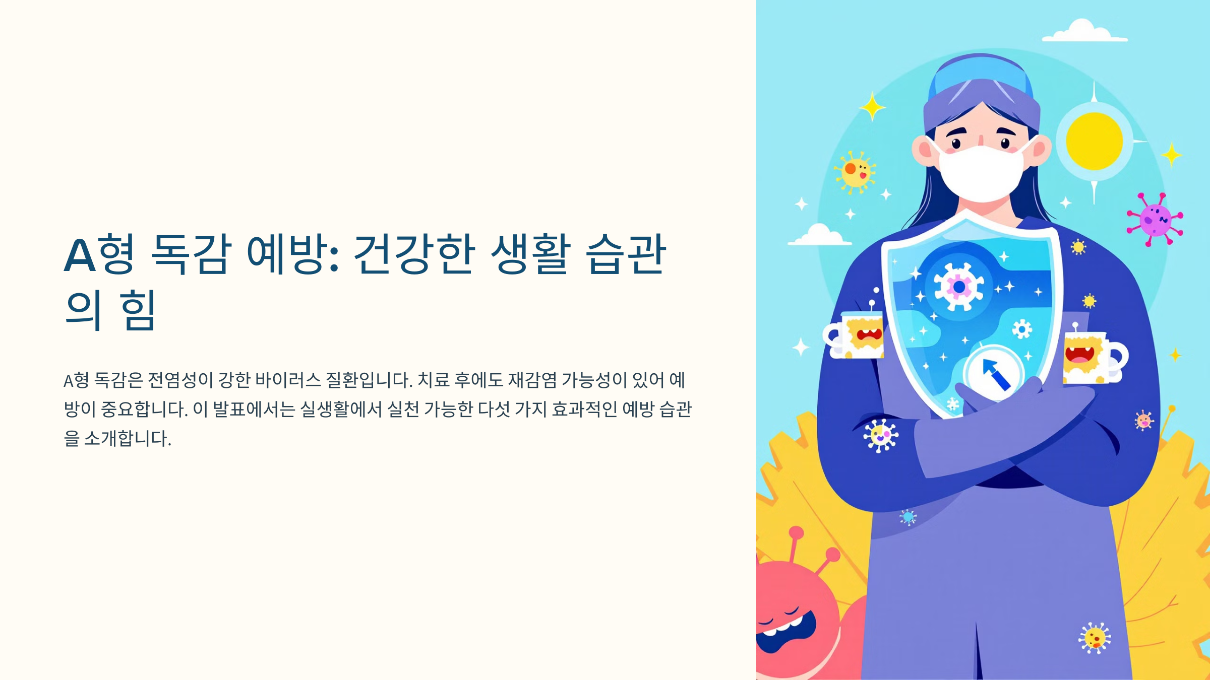 A형 독감은 전염성이 강한 바이러스 질환이에요. 치료가 끝났더라도 재감염 가능성이 남아 있기 때문에 적절한 예방 습관을 유지하는 것이 중요해요. 저는 이 주제에 대해 연구하면서 실생활에서 실천 가능한 습관들에 대해 생각해 보았는데요. 여기서 소개하는 다섯 가지 방법은 단순하면서도 효과적이랍니다.