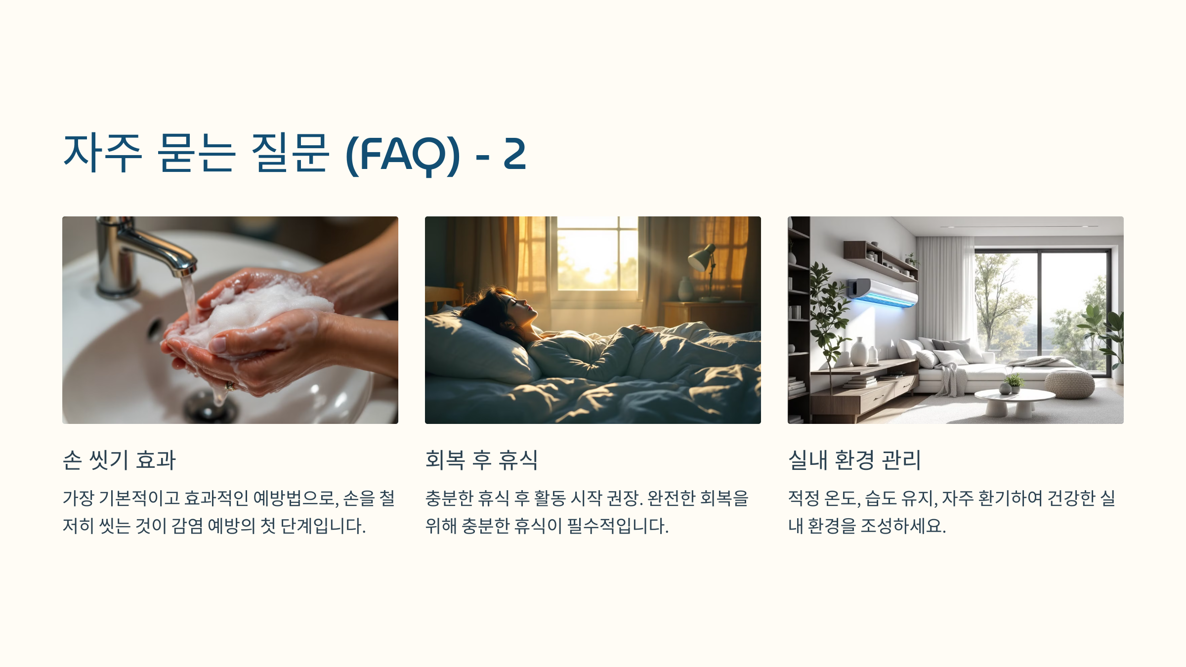 A8. 개인 위생 관리, 균형 잡힌 식단, 충분한 수면이 가장 중요해요.