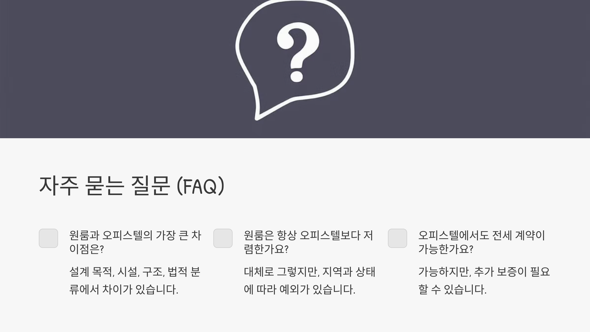 Q1. 원룸과 오피스텔의 가장 큰 차이점은 뭔가요?