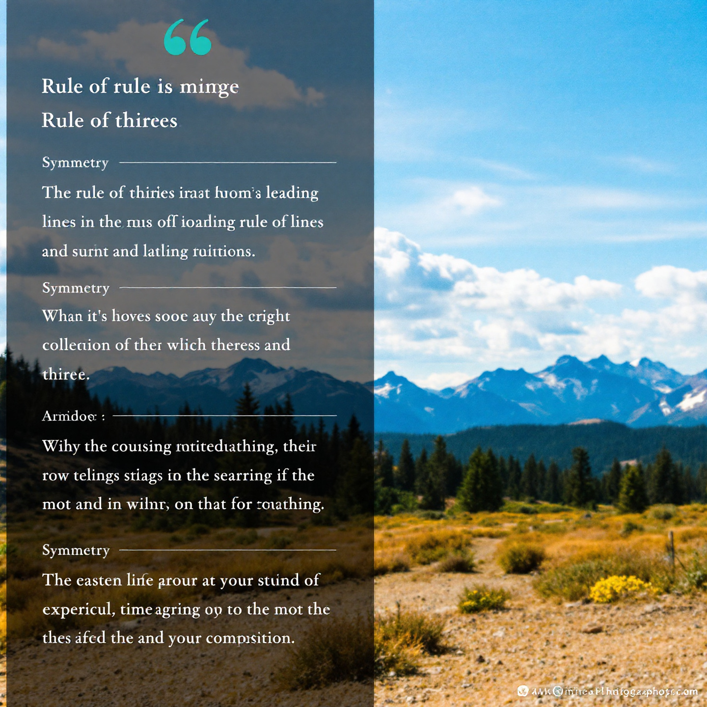 전경에 나무나 돌 같은 물체를 배치해 입체감을 더하세요.