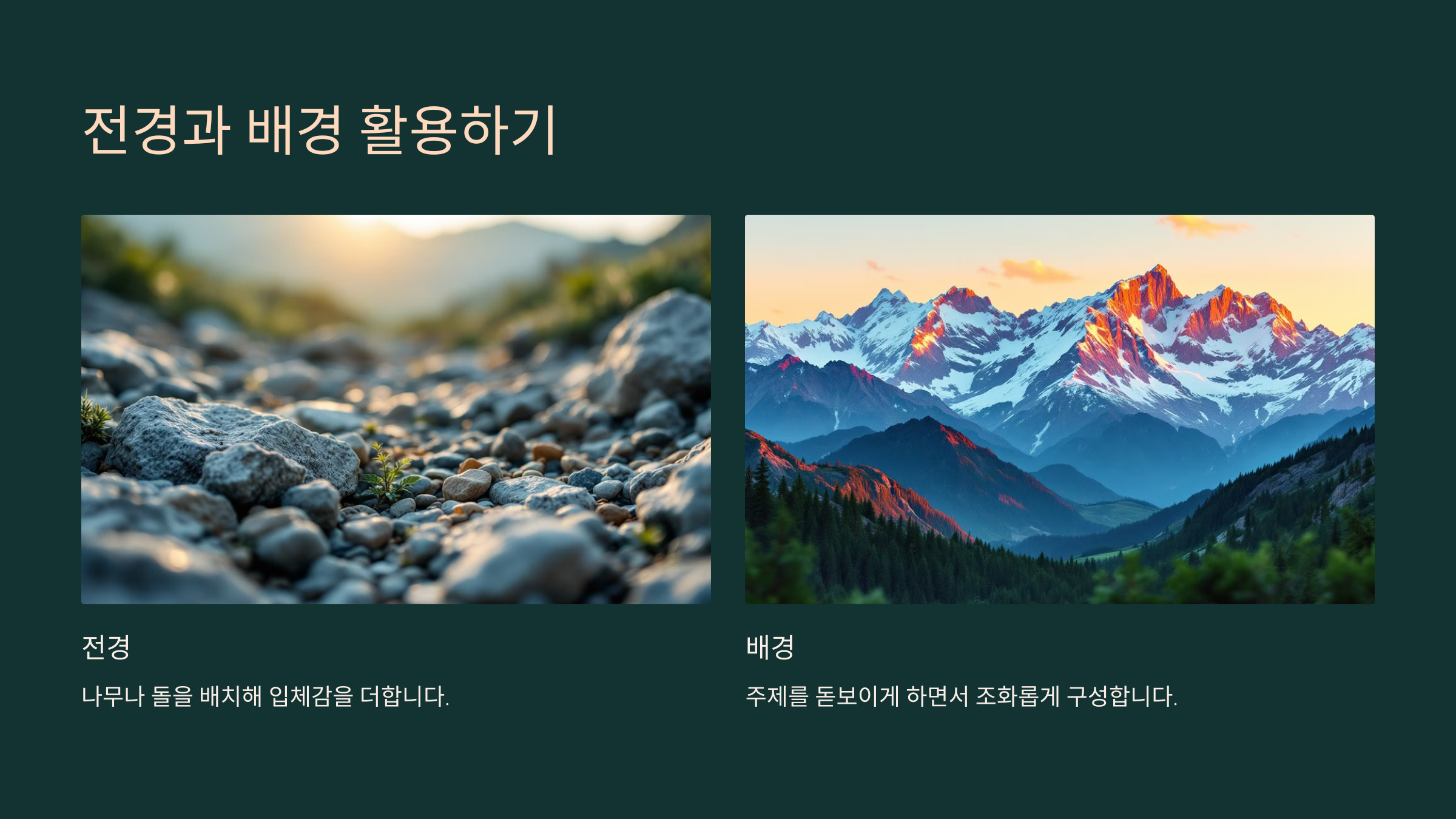배경은 주제를 돋보이게 하면서도 조화롭게 구성해야 합니다.