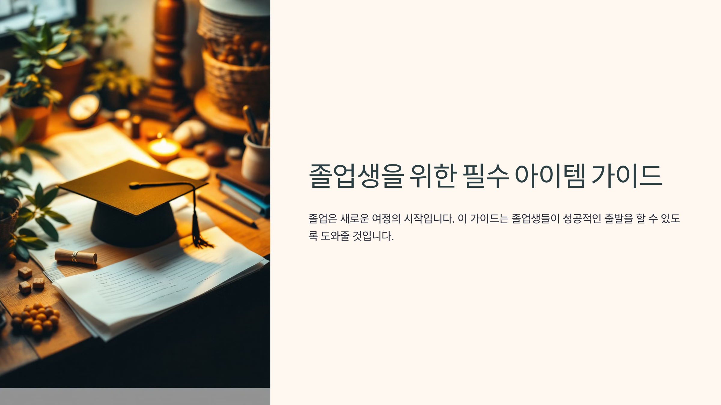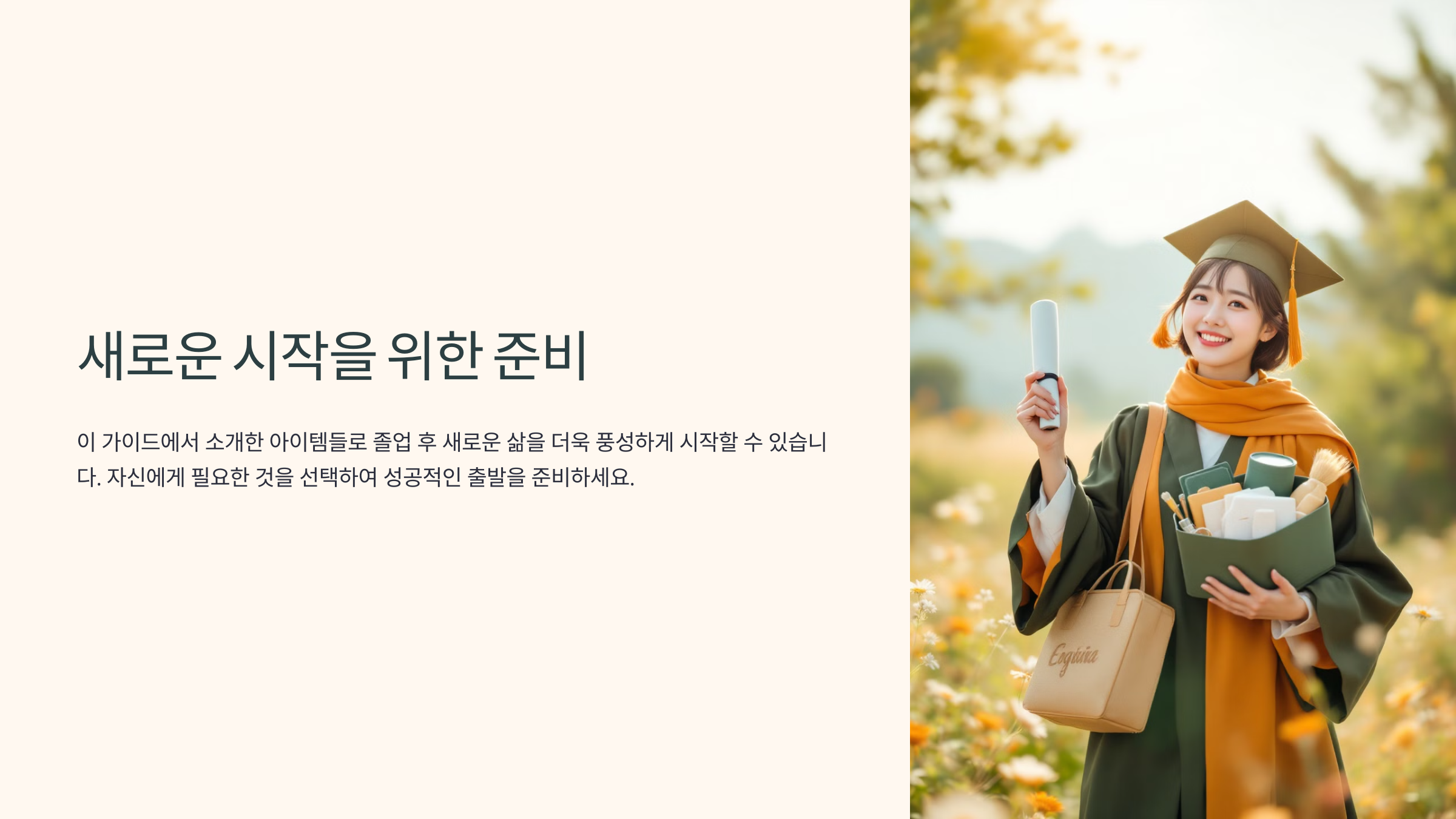 제가 생각했을 때 졸업생들이 가장 많이 필요로 하는 건 현실적인 도구와 자기계발을 위한 아이템이에요. 특히 한국 정서에 맞게 꼭 필요한 물건들을 준비한다면 새 출발을 더욱 성공적으로 할 수 있을 거예요. 지금부터 졸업생들에게 꼭 필요한 생활 필수템들을 하나씩 살펴볼게요!