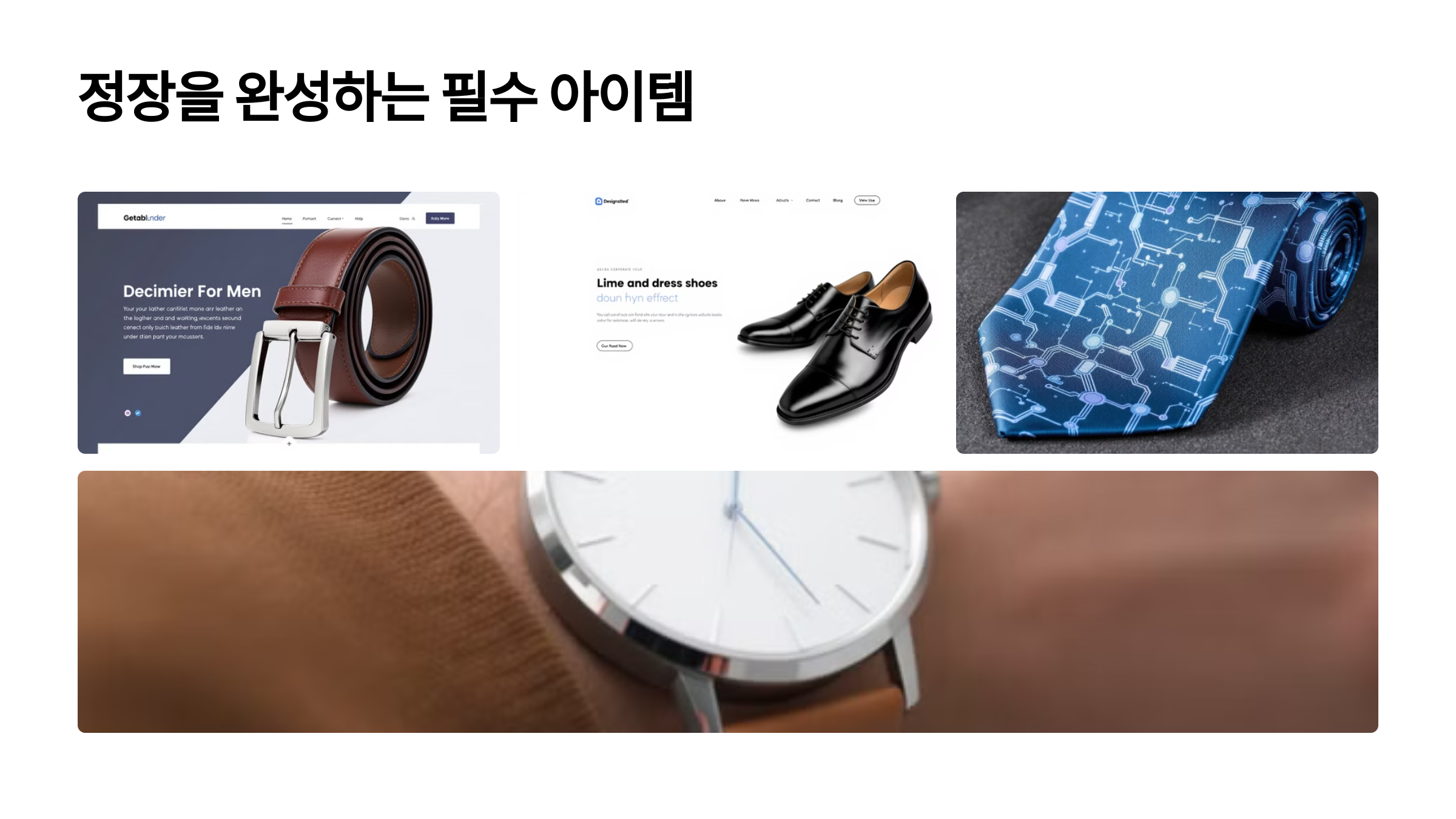 A6. 가죽 벨트, 깔끔한 구두, 넥타이, 심플한 손목시계가 정장을 완성하는 데 꼭 필요해요.