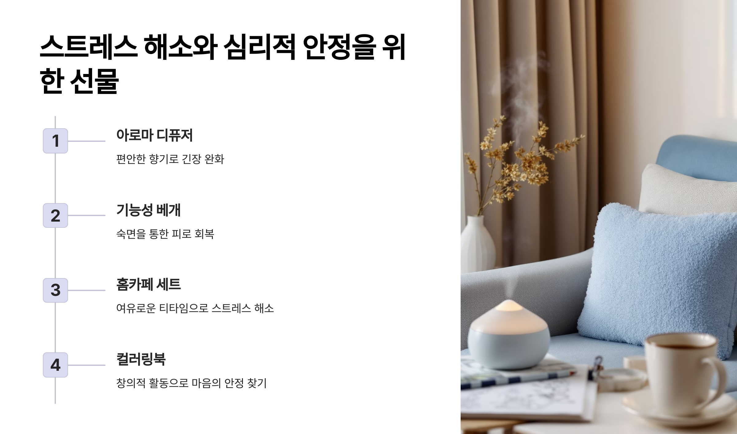 스트레스를 줄이고 숙면을 돕는 아로마 디퓨저도 좋은 선물이에요. 초년생들이 새로운 환경에 적응하며 겪을 수 있는 긴장과 불안을 완화해 줄 수 있답니다.