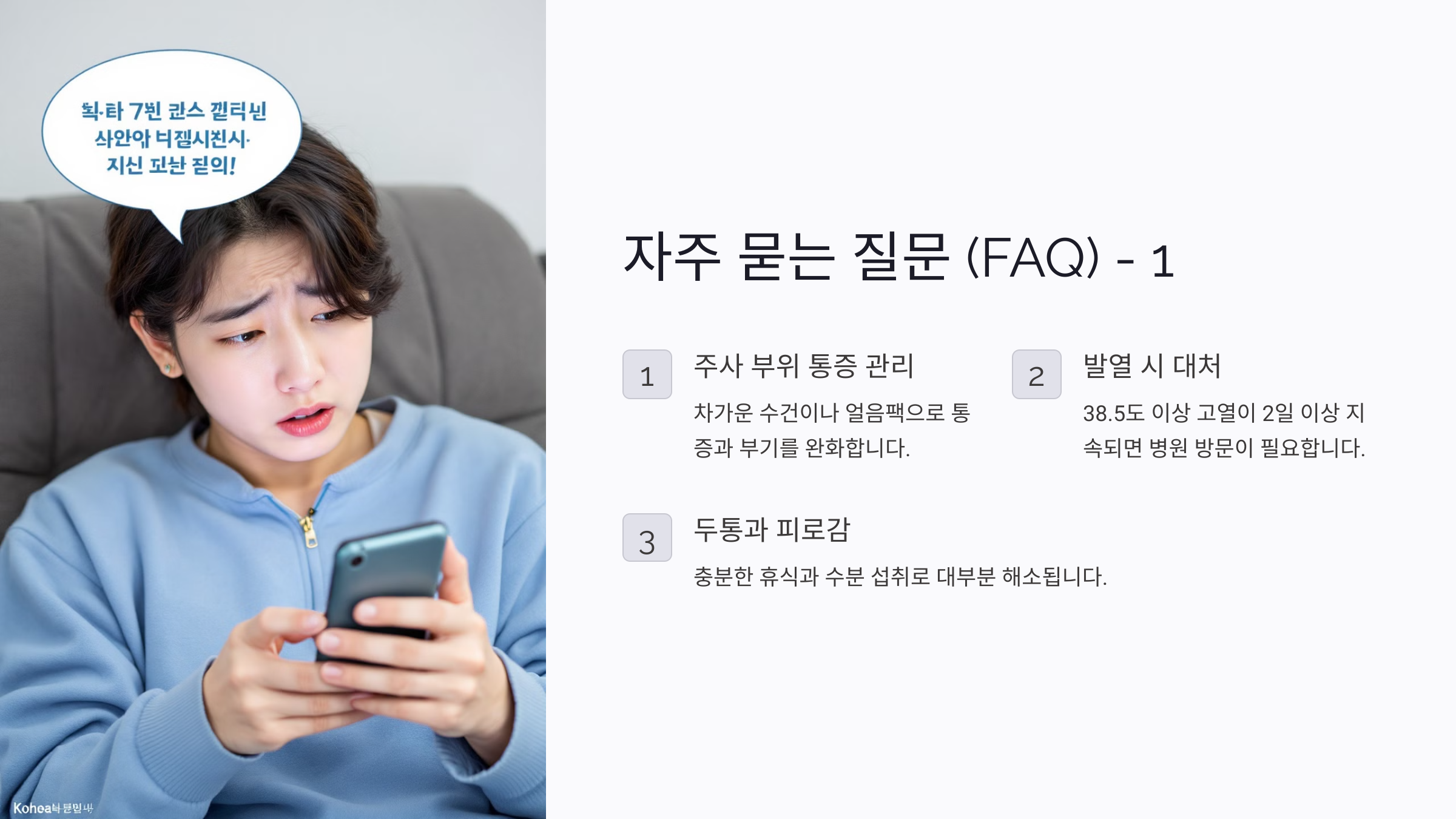 Q3. 예방 접종 후 두통과 피로감이 계속돼요. 괜찮은 건가요?