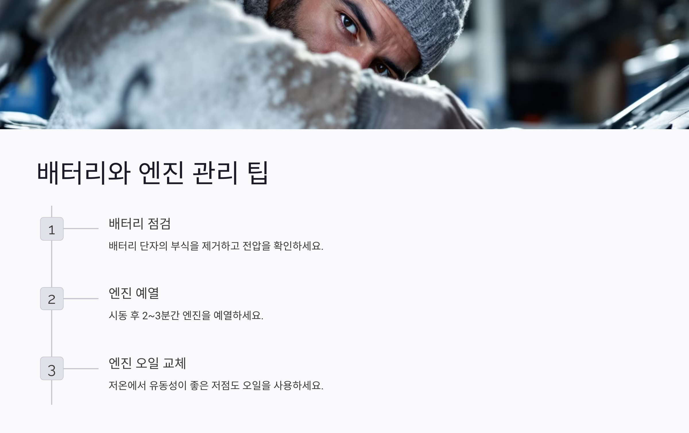 오늘은 겨울철 차량 관리를 위한 꿀팁과 시동 꺼짐을 예방하는 방법을 단계별로 알려드릴게요. 배터리 점검에서 연료 시스템 관리까지, 꼼꼼히 살펴보고 실천하면 올 겨울 더 안전하고 편안한 운전을 할 수 있을 거예요. 한국의 겨울철 날씨는 예측하기 어렵기 때문에, 사전에 철저히 준비하는 것이 중요해요!