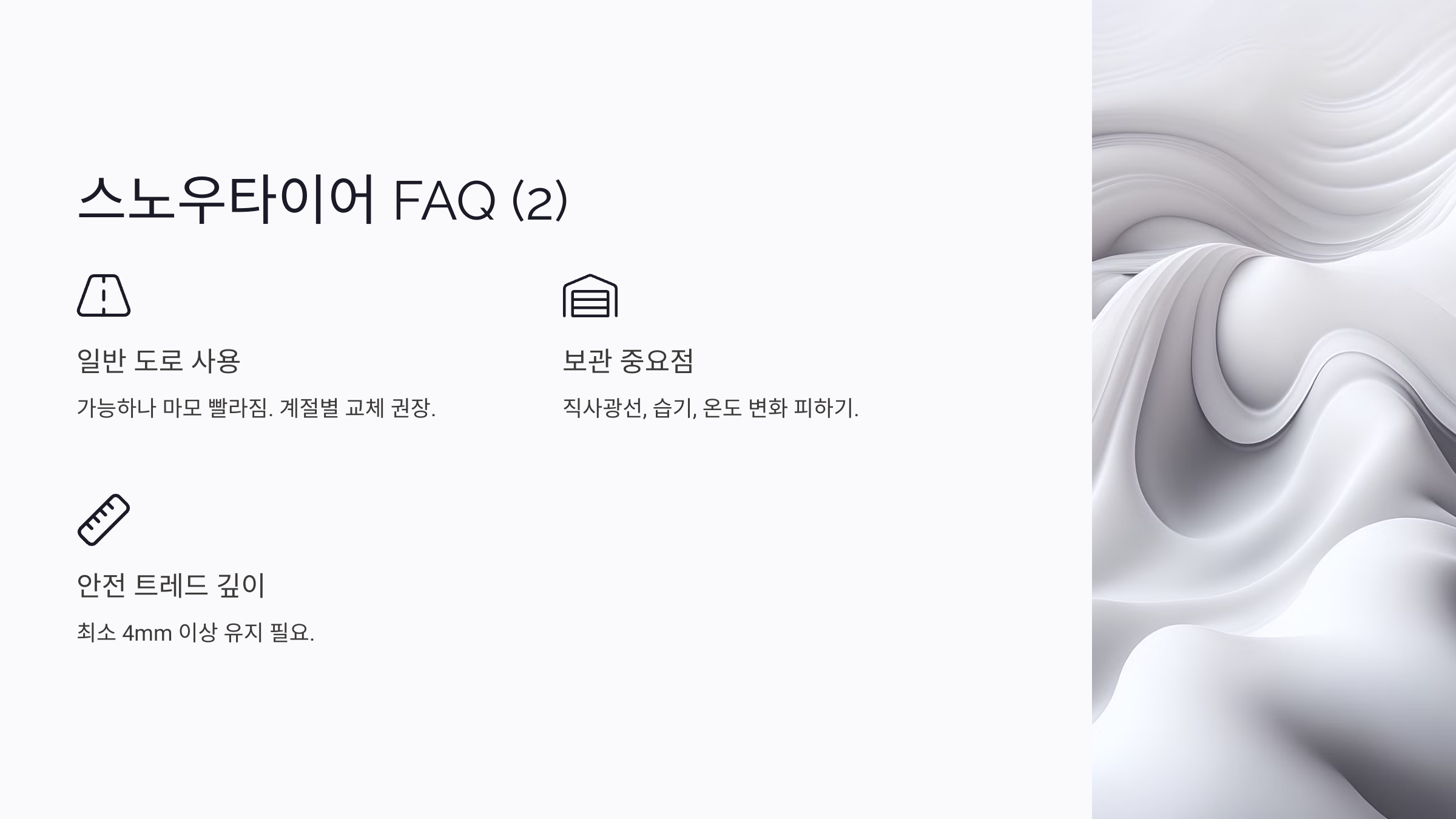 Q4. 스노우타이어를 일반 도로에서도 사용해도 되나요?