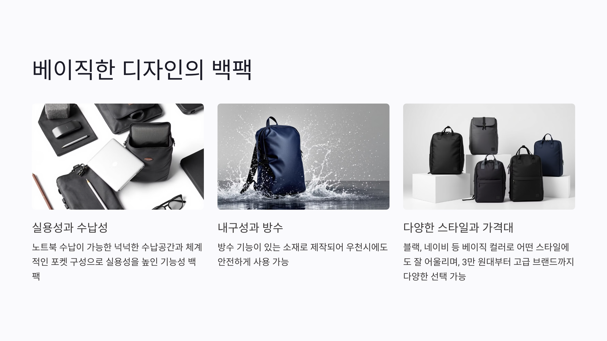 베이직한 디자인의 백팩