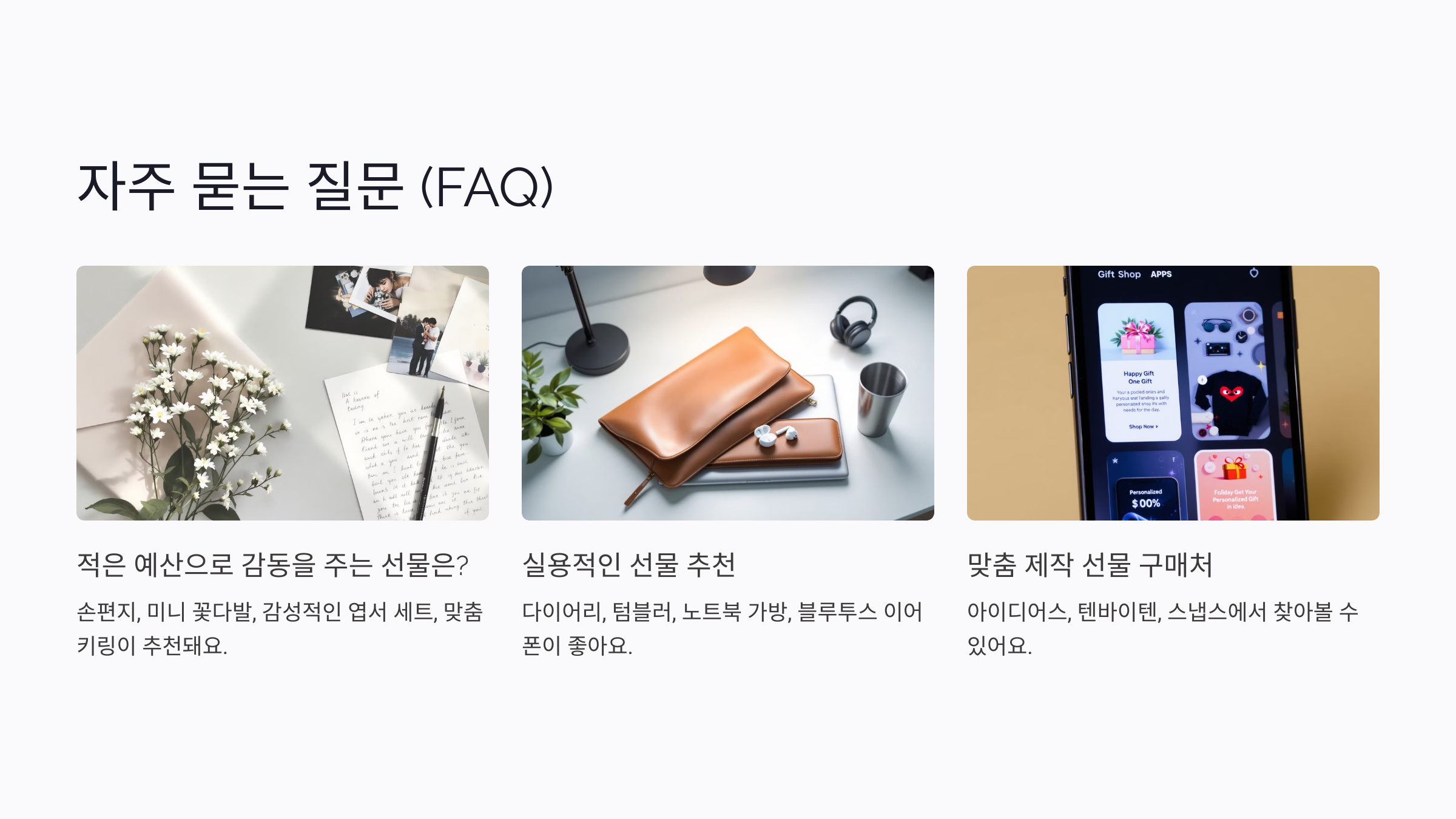 Q1. 예산이 적어도 감동을 줄 수 있는 선물이 있을까요?