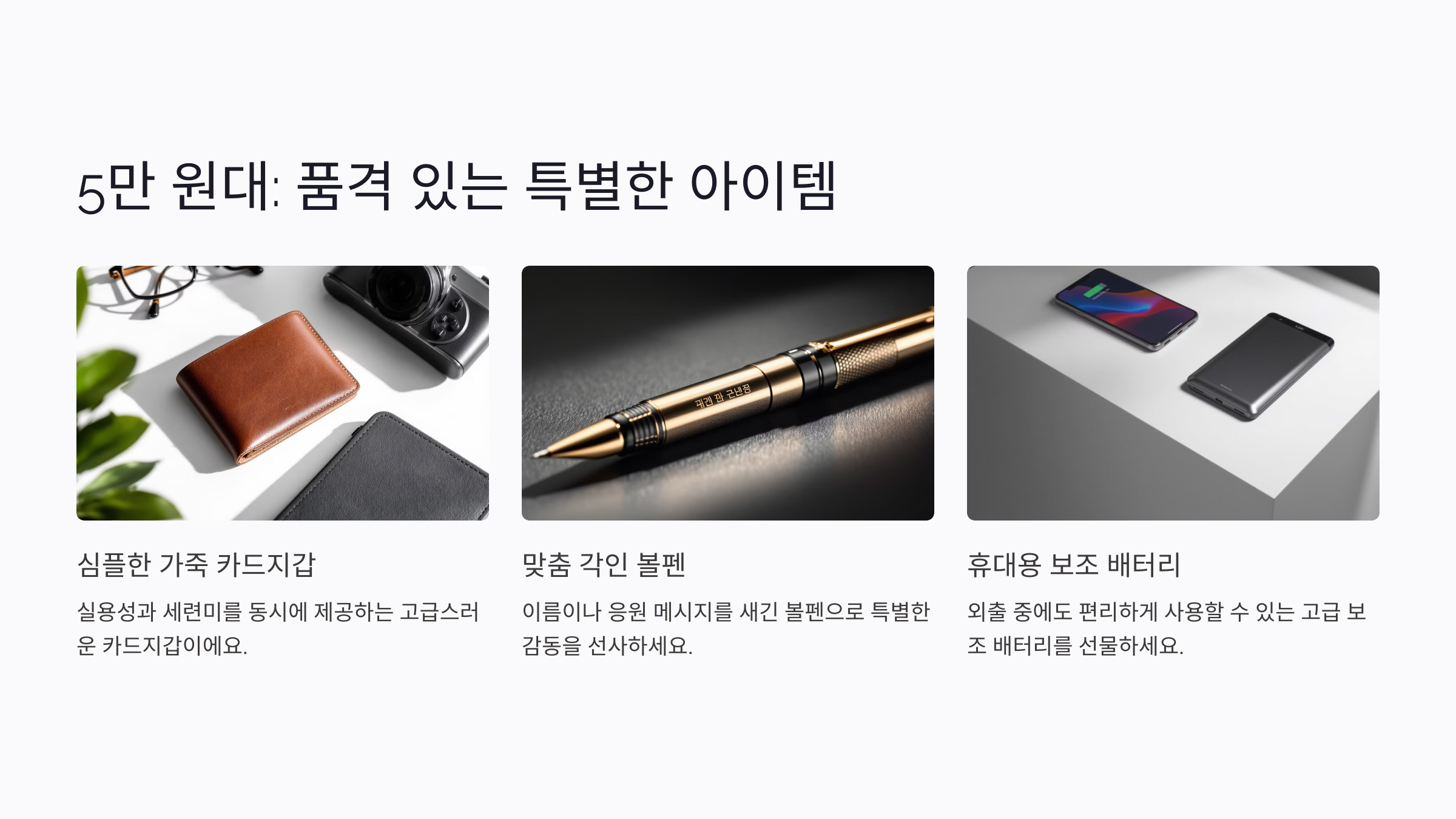 5만 원대 선물은 품격을 더해줄 아이템을 선택할 수 있는 좋은 예산이에요. 졸업생의 취향과 필요를 고려한 선물이 특히 추천돼요.