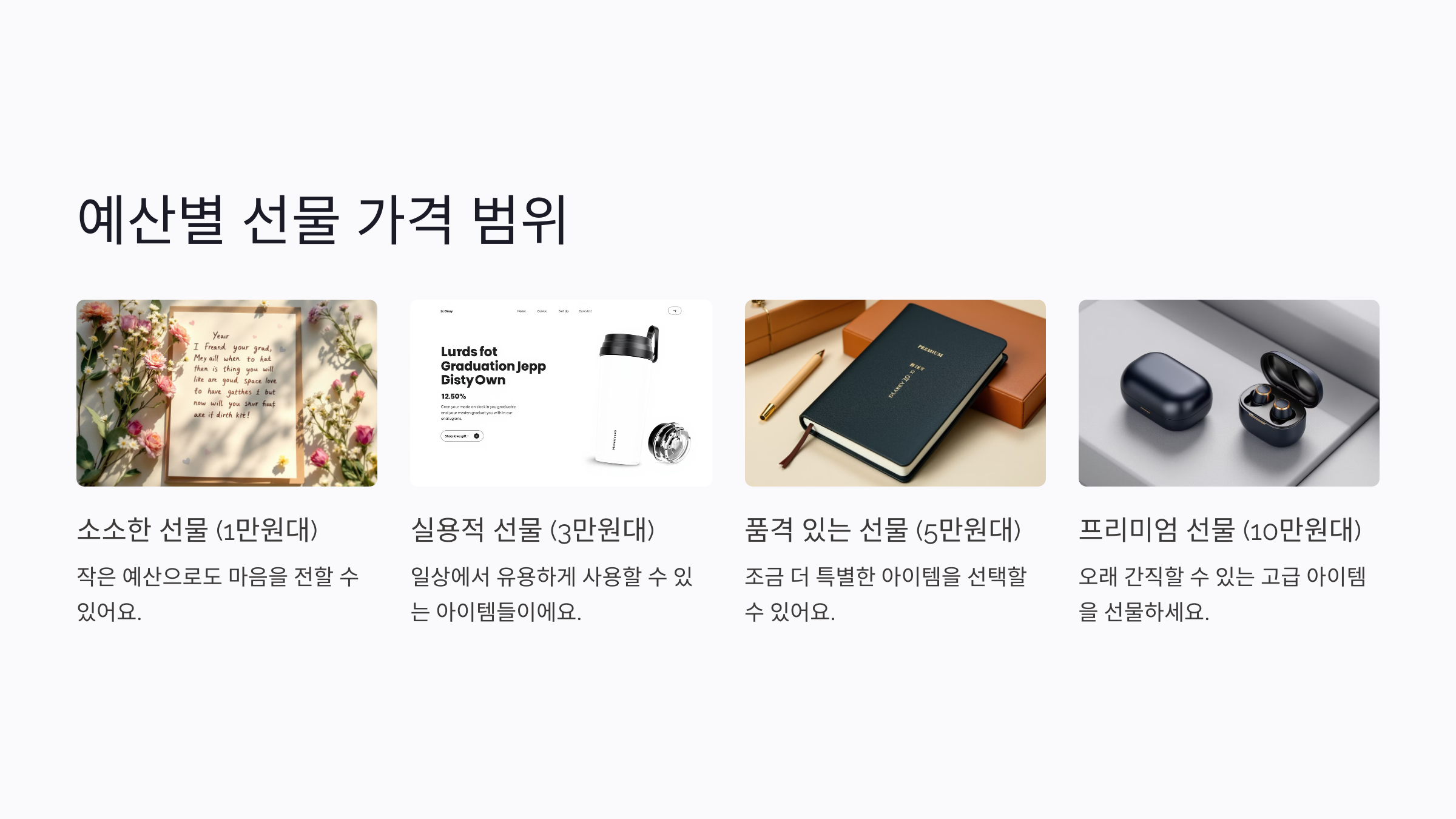 이 가이드는 예산별로 나눠진 다양한 선물 아이디어를 제공해요. 실용적이고 감동을 줄 수 있는 아이템들로 구성했으니, 졸업생의 취향과 필요에 맞춰 선택해 보세요!