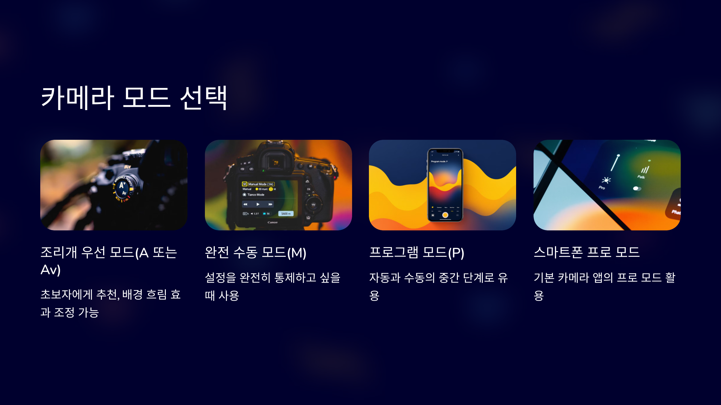 초보자에게는 조리개 우선 모드(A 또는 Av)를 추천합니다.