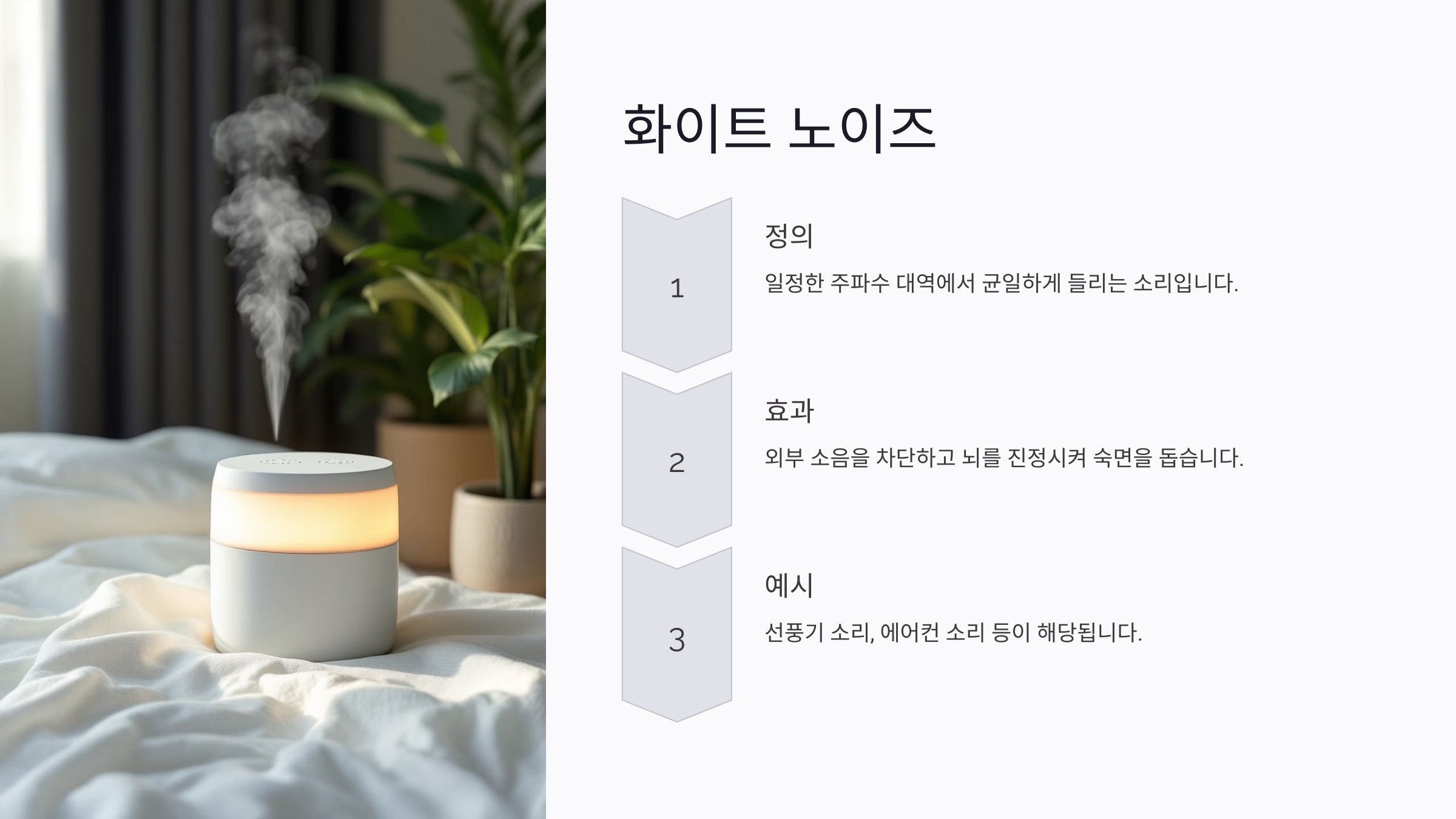 화이트 노이즈는 일정한 주파수 대역에서 균일하게 들리는 소리로, 예를 들어 선풍기 소리나 에어컨 소리가 이에 해당해요. 이 소리는 외부 소음을 차단하는 데 탁월한 효과를 가지고 있어요. 특히 소음이 심한 도시 환경에서 사는 사람들에게는 최적의 선택이에요.