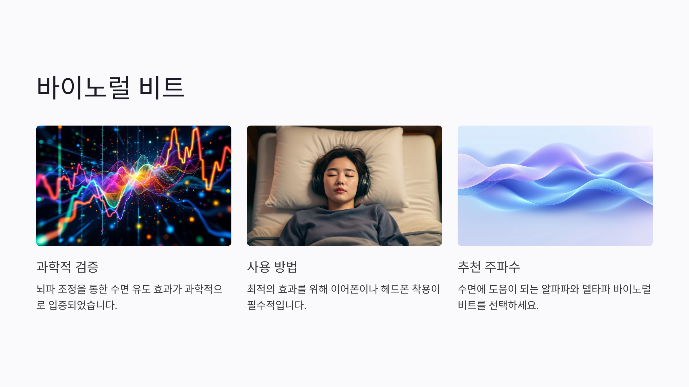 바이노럴 비트는 좌우 귀에 서로 다른 주파수를 들려줘 뇌파를 조정하는 음악이에요. 이런 음악은 과학적으로도 검증된 수면 유도 방법 중 하나랍니다. 특히 알파파(Alpha Wave)나 델타파(Delta Wave) 바이노럴 비트는 숙면을 돕는 데 큰 효과가 있어요.