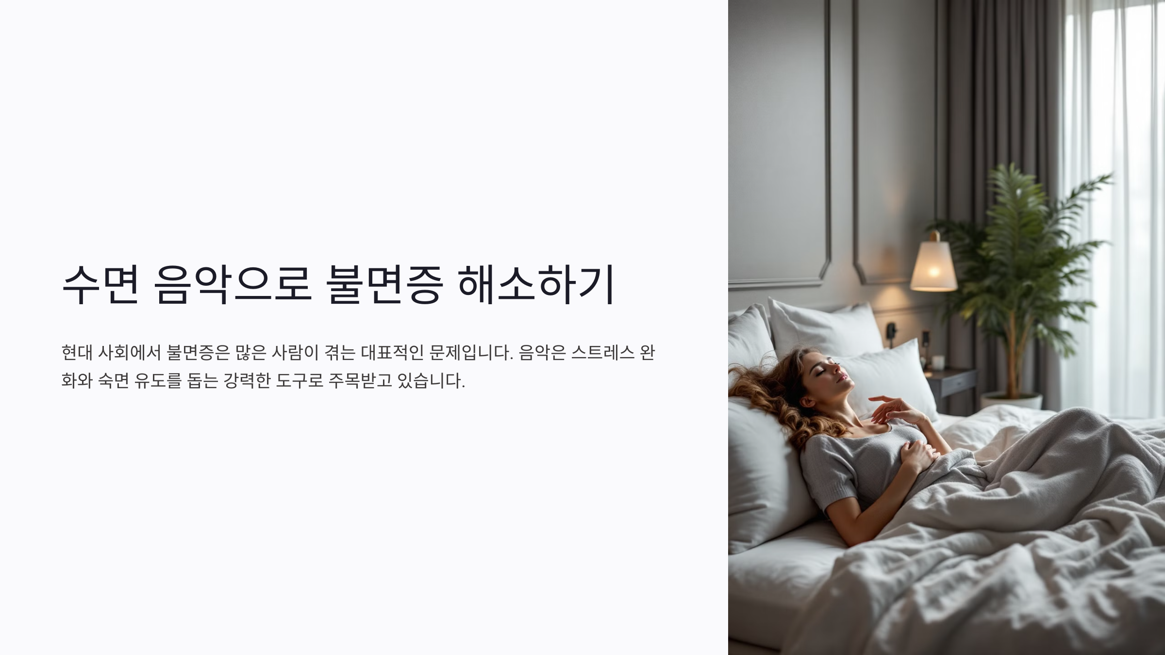 현대 사회에서 불면증은 많은 사람이 겪는 대표적인 문제 중 하나예요. 일상의 스트레스와 불규칙한 생활습관이 수면의 질을 떨어뜨리면서, 점점 더 많은 사람들이 수면 부족으로 어려움을 겪고 있어요. 그중에서도 음악은 스트레스 완화와 숙면 유도를 돕는 강력한 도구로 주목받고 있답니다.
