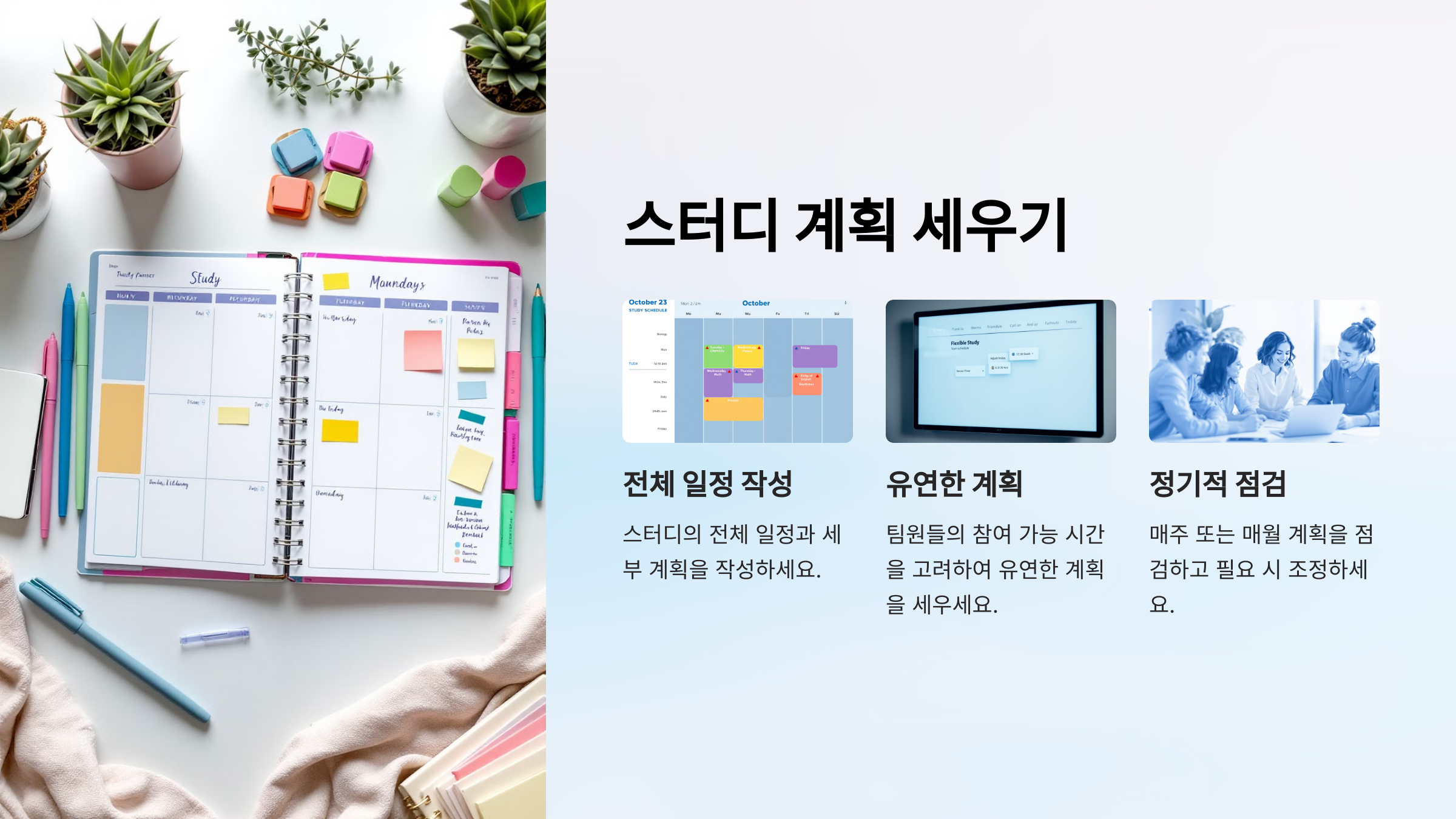 스터디의 전체 일정과 세부 계획을 작성하세요.