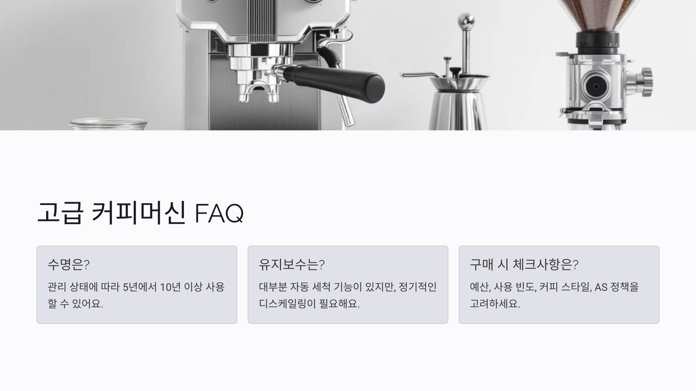 Q1. 고급 커피머신의 수명은 얼마나 되나요?