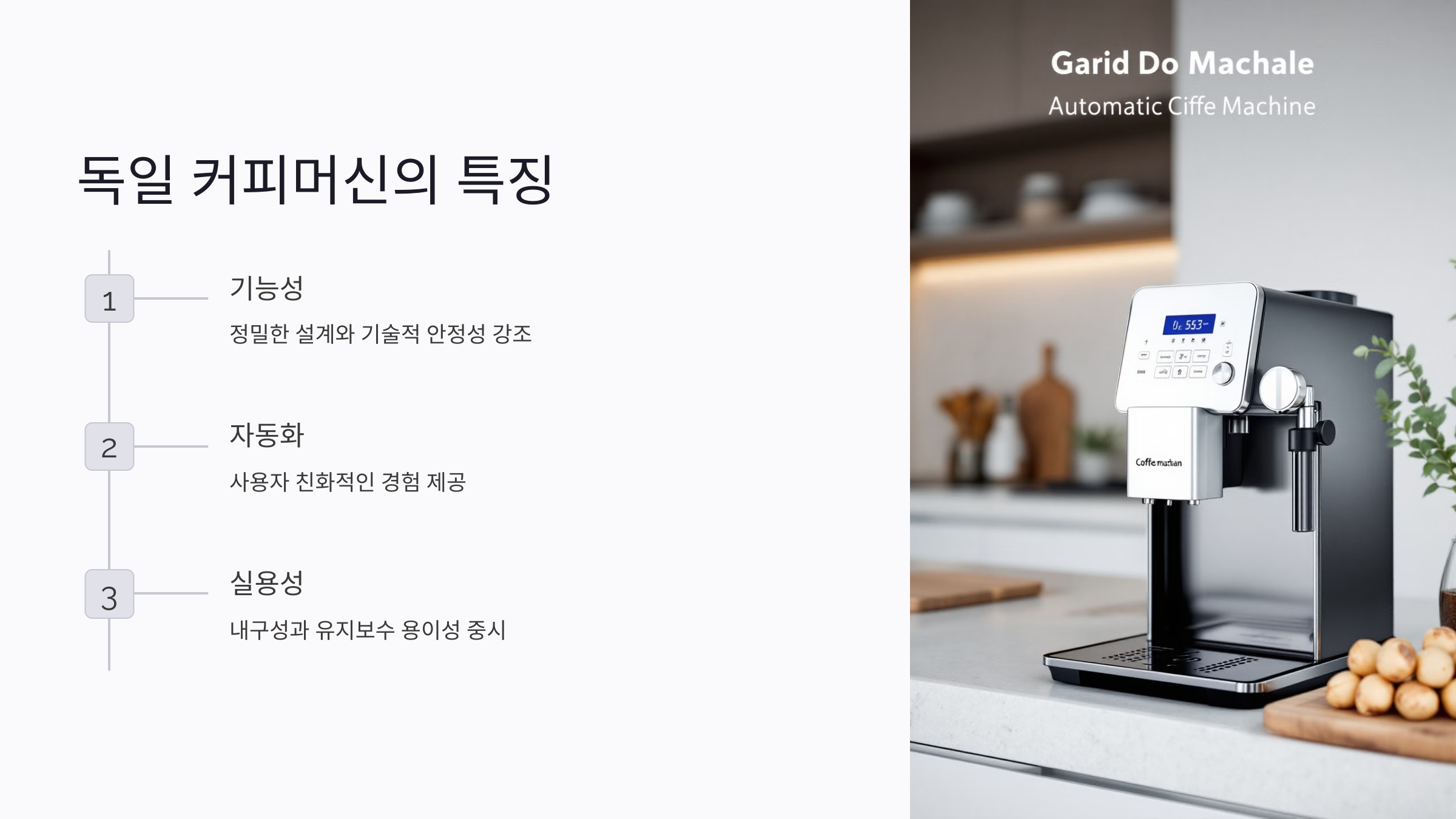 독일 커피머신은 기능성과 정밀한 설계로 유명해요. 기술적 안정성과 자동화 기능에 초점을 맞춘 제품들이 많아, 사용자 친화적인 경험을 제공한답니다. 이탈리아 머신이 전통과 감성을 강조한다면, 독일 머신은 실용성과 내구성을 중시한다고 볼 수 있어요.