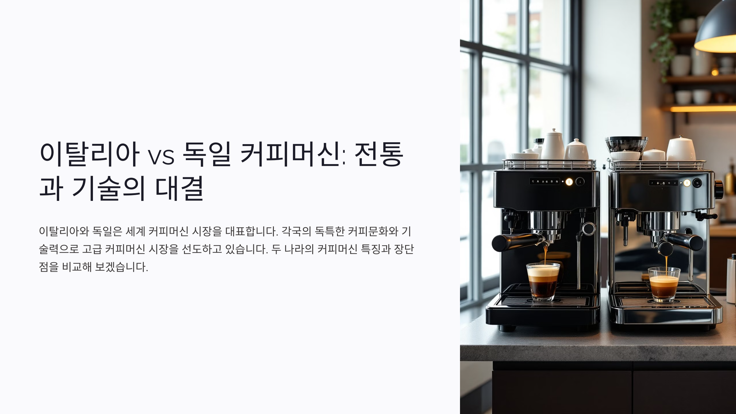 이탈리아와 독일은 전 세계 커피머신 시장을 대표하는 두 축이라고 할 수 있어요. 두 나라 모두 각자의 독특한 커피문화와 기술력을 바탕으로 고급 커피머신 시장을 선도하고 있답니다. 그런데, 이탈리아와 독일 커피머신은 무엇이 다를까요? 각 나라의 브랜드 특징과 장단점을 비교하며 알아볼게요.