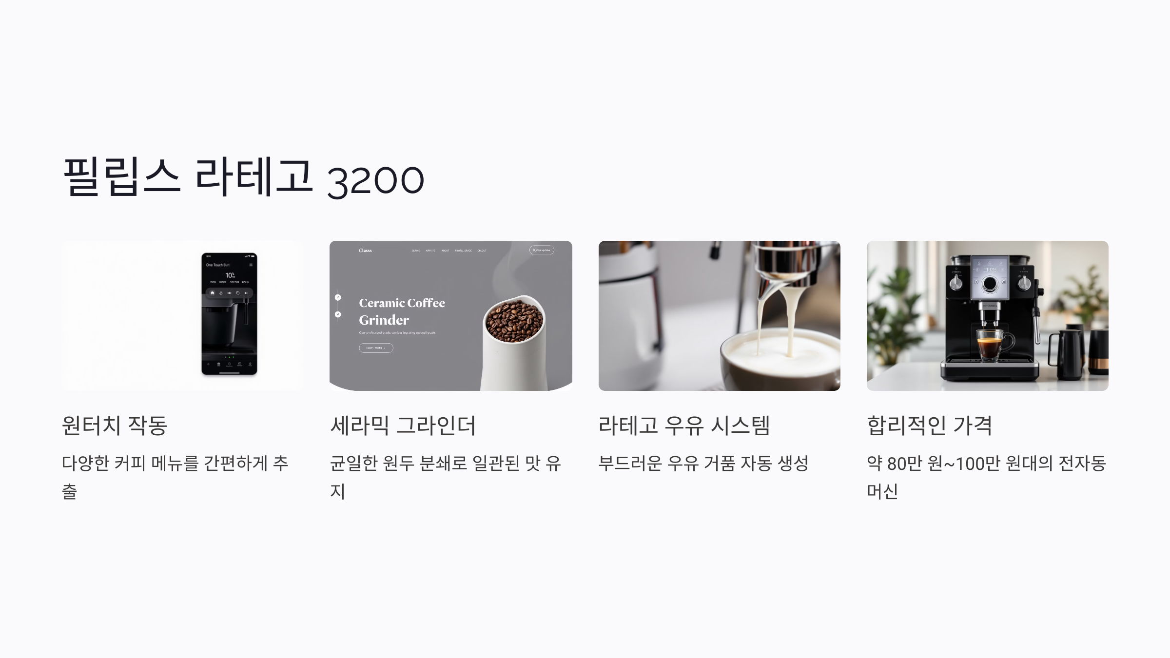 필립스 라테고 3200은 간편함과 높은 성능을 원하는 분들에게 완벽한 선택이 될 거예요. 전자동 머신으로 쉽게 맛있는 커피를 추출할 수 있는 것이 강점이에요.
