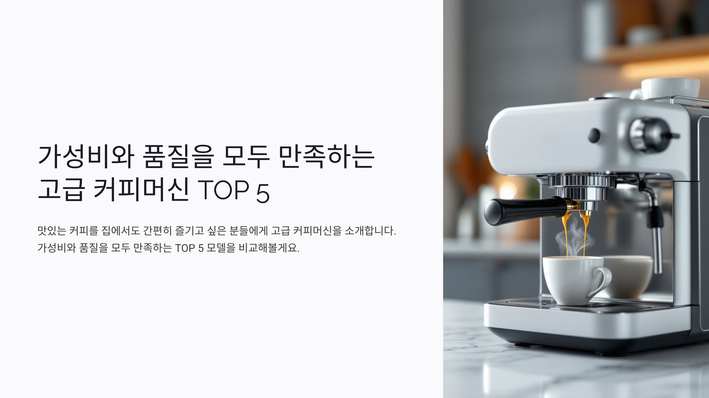 맛있는 커피를 집에서도 간편히 즐기고 싶은 분들에게는 고급 커피머신이 큰 도움이 돼요. 하지만, 고급형 모델은 종종 높은 가격대 때문에 접근이 어려운 경우가 많죠. 그래서 가성비와 품질을 모두 만족하는 커피머신 TOP 5를 소개하려고 해요.