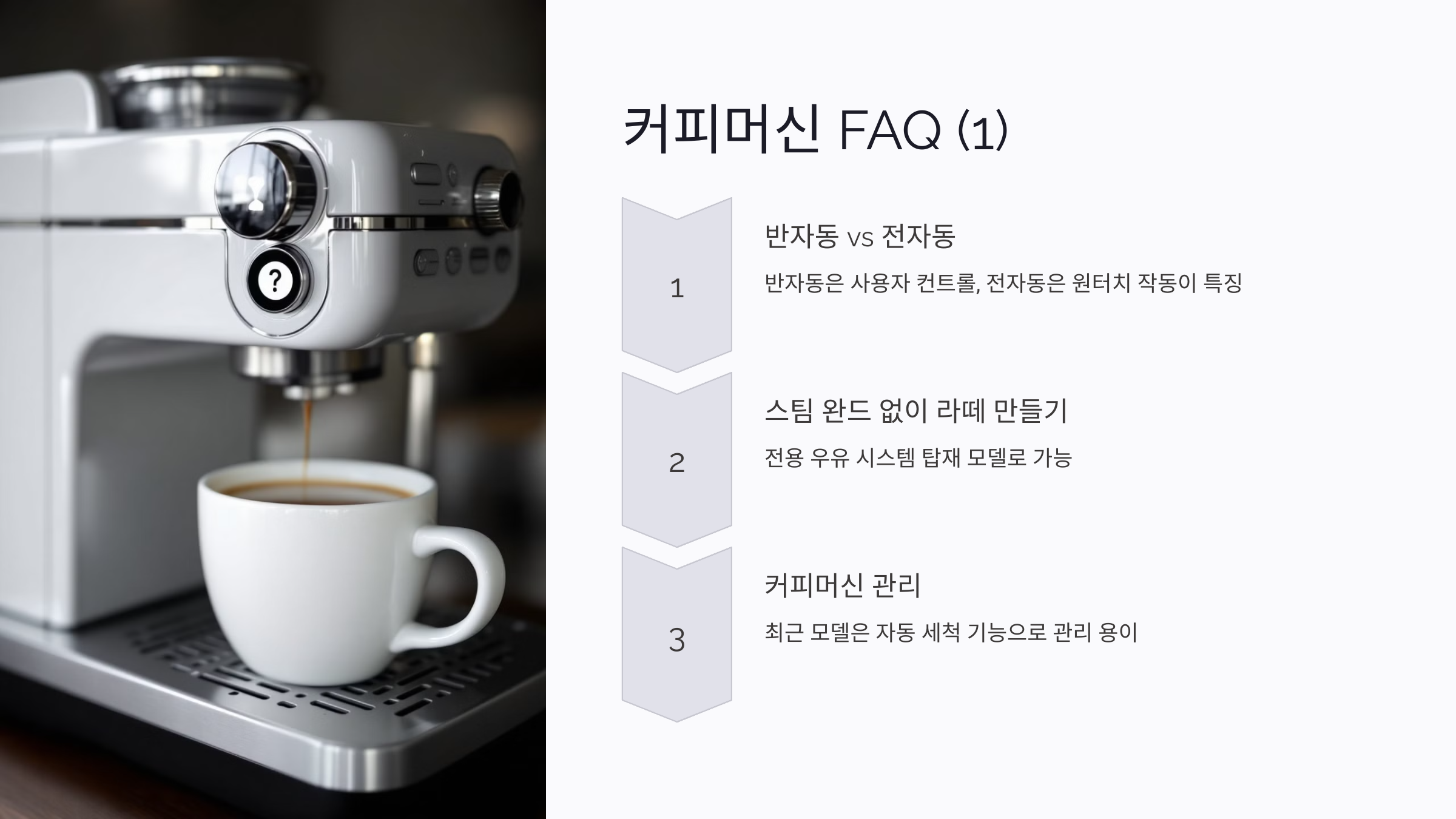Q1. 반자동과 전자동 커피머신의 차이는 무엇인가요?