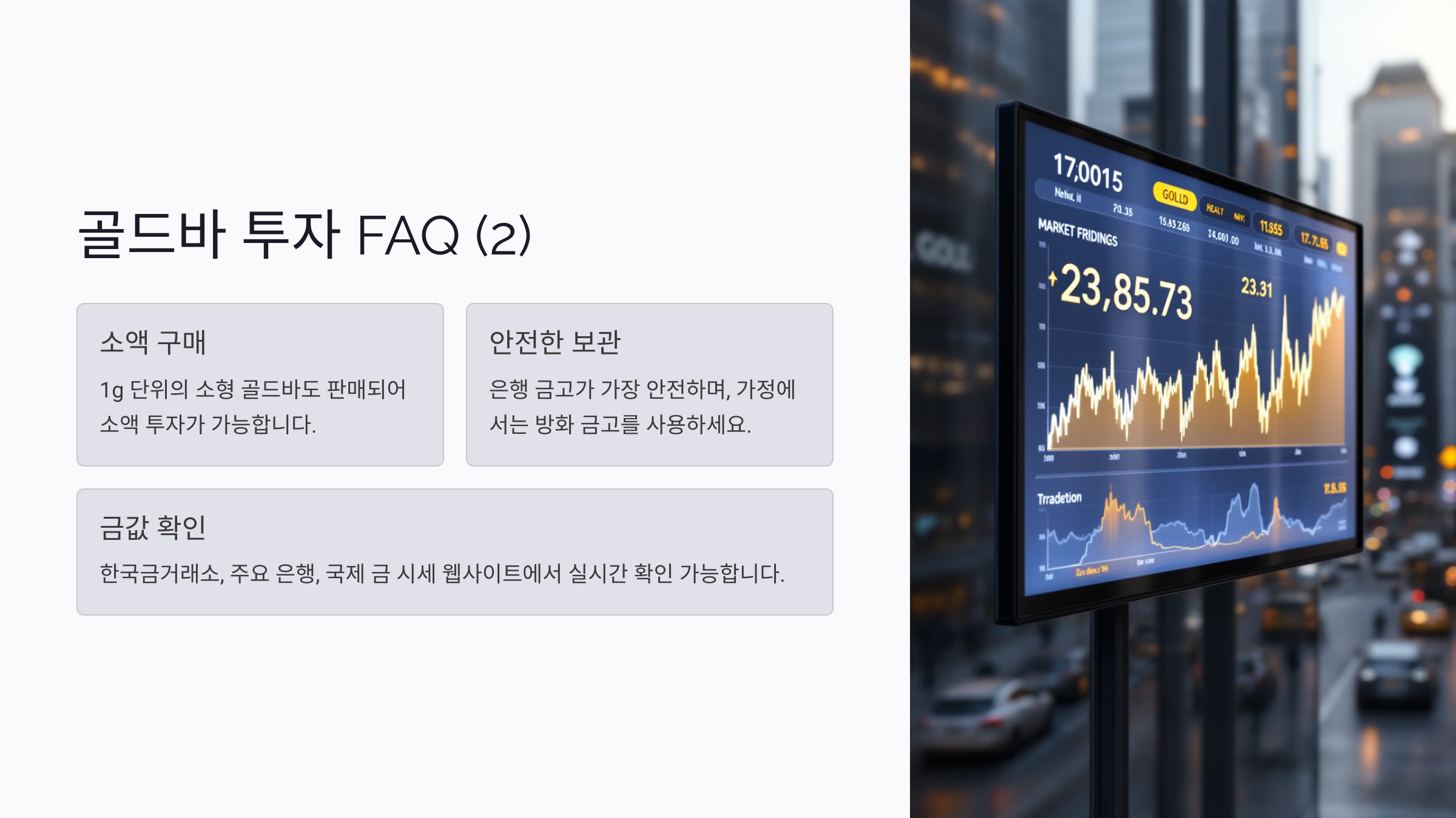 A4. 네, 1g 단위의 소형 골드바도 판매되고 있어서 소액 투자자도 쉽게 시작할 수 있어요.