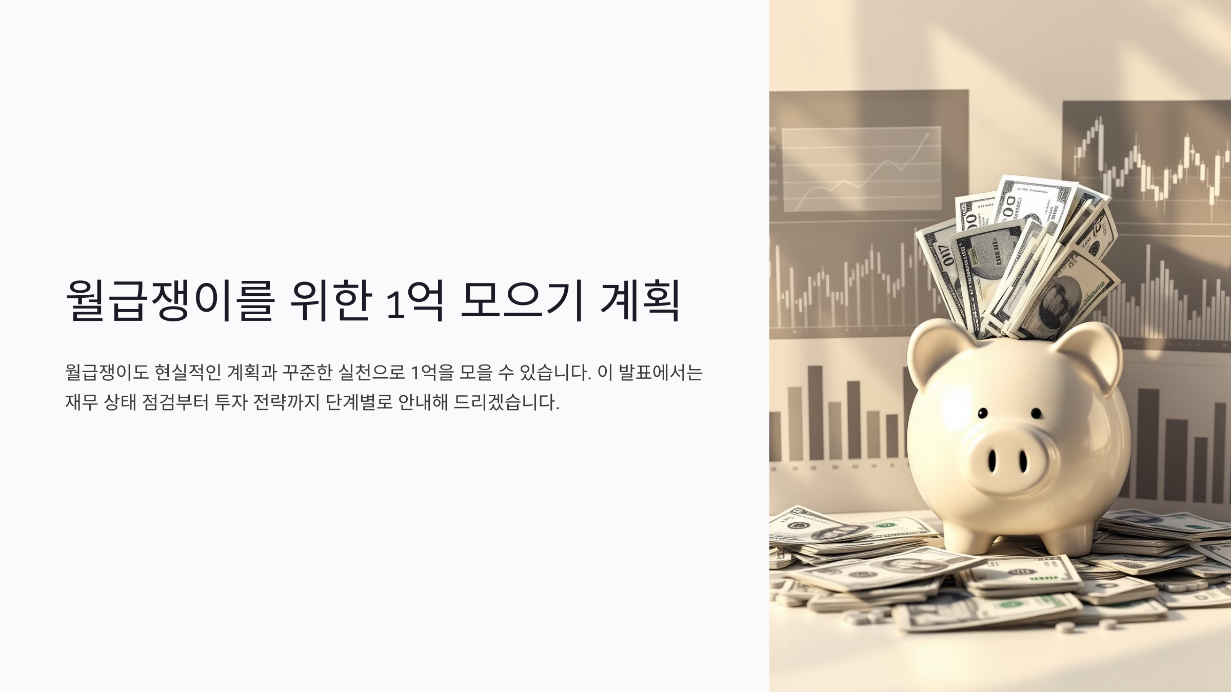 이 글에서는 재무 상태 점검부터 저축과 투자 비율 설정, 안정적인 투자 상품 활용, 그리고 소비 습관 개선까지, 월급쟁이를 위한 구체적인 1억 모으기 계획을 단계별로 안내할게요. 제가 생각했을 때 이 방법들은 누구나 실천할 수 있는 현실적인 방안이에요!