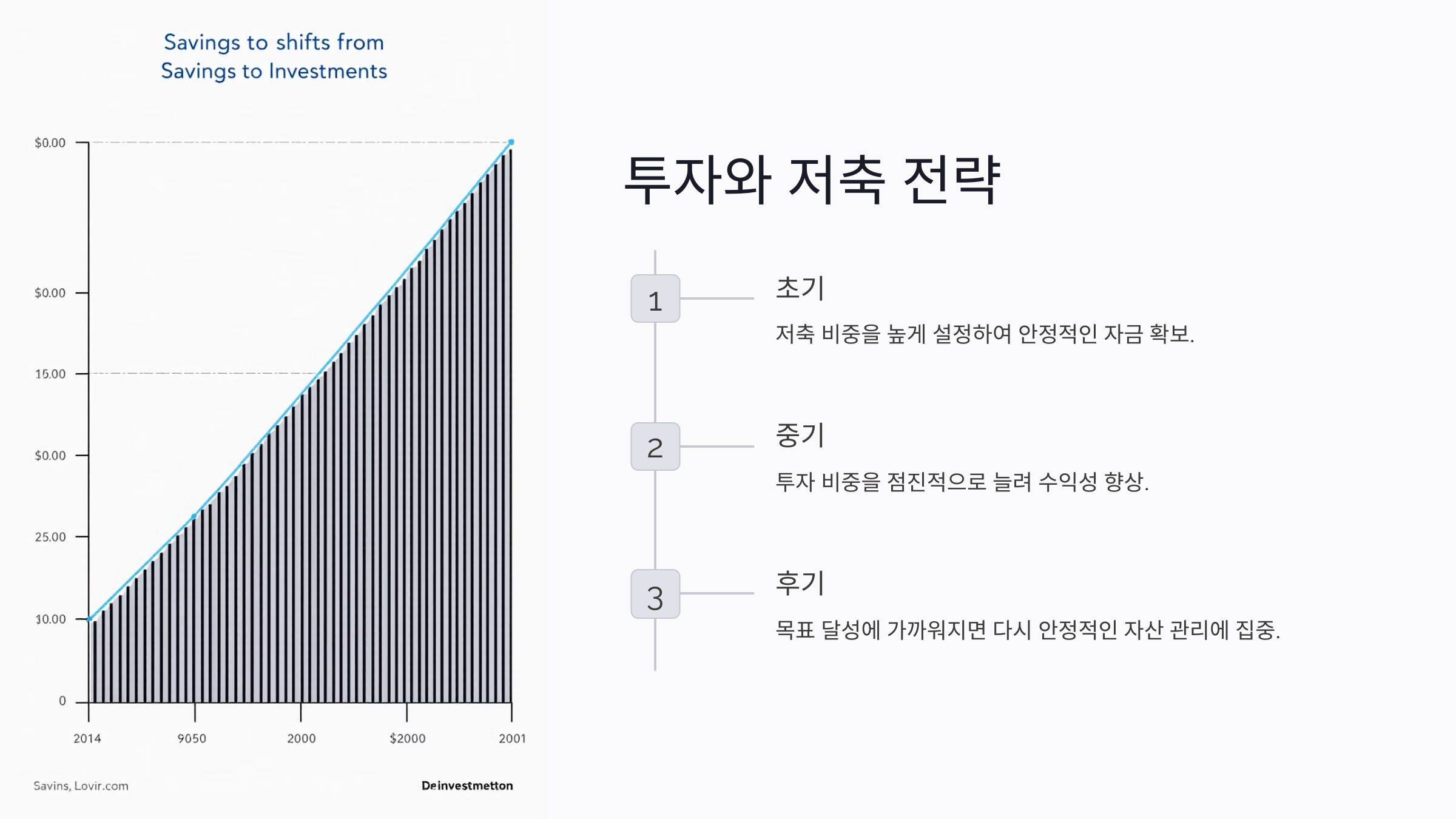 A8. 초기에는 저축 비중을 높이고, 시간이 지나면서 투자 비중을 늘리는 것이 효과적이에요. 안정성과 수익성을 균형 있게 고려하세요.
