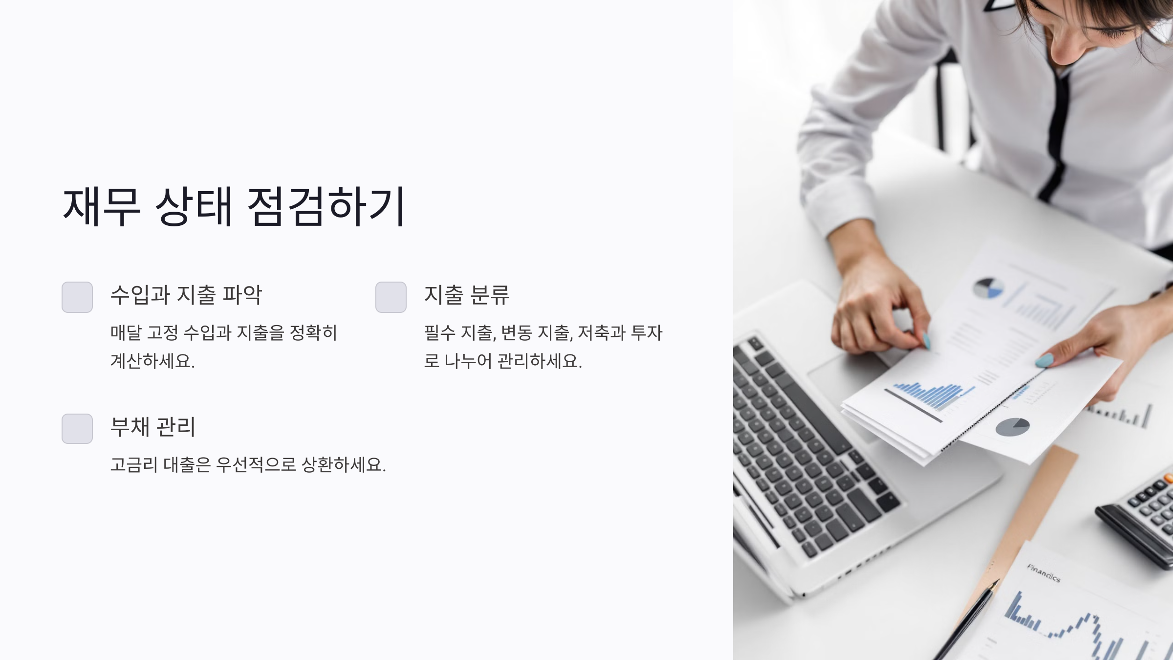 1억을 모으기 위한 첫 단계는 자신의 현재 재무 상태를 철저히 점검하는 거예요. 매달 고정 수입과 지출을 정확히 파악하고, 남는 금액(흑자)을 계산해보세요. 이 금액이 실제로 저축과 투자를 통해 모을 수 있는 자산의 핵심이에요.