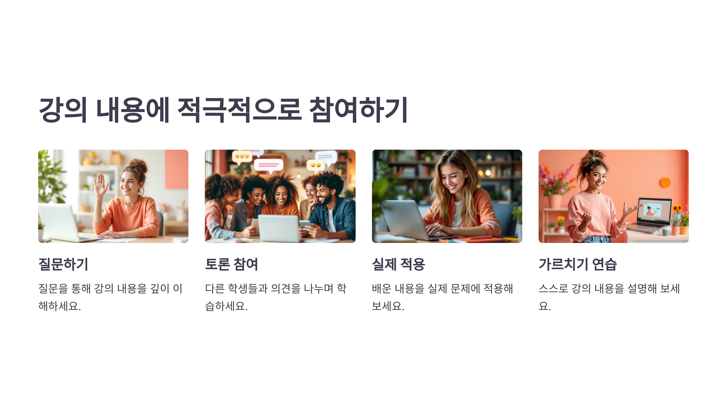 스스로 강의 내용을 가르쳐 보는 연습을 해보세요.