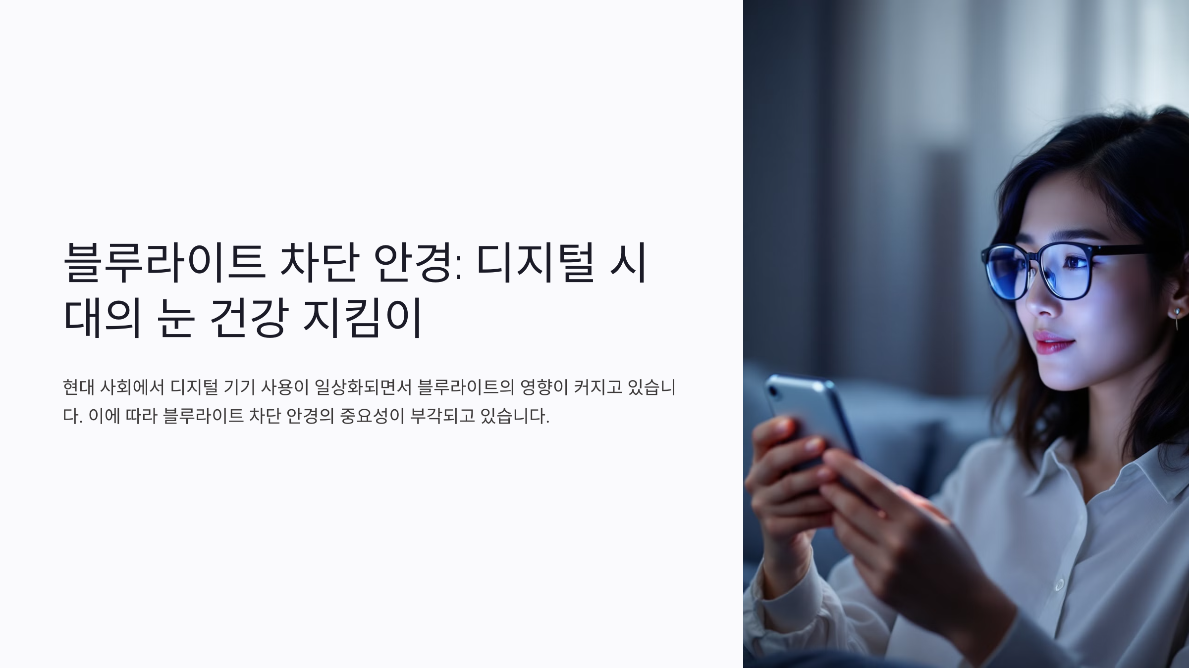 디지털 기기 사용이 일상화된 현대 사회에서는 블루라이트의 영향이 점점 더 커지고 있어요. 특히 스마트폰, 컴퓨터, TV 등에서 나오는 블루라이트는 눈 건강에 해로운 영향을 미칠 수 있어요. 이러한 문제를 예방하기 위해 많은 사람들이 블루라이트 차단 안경을 사용하고 있답니다.