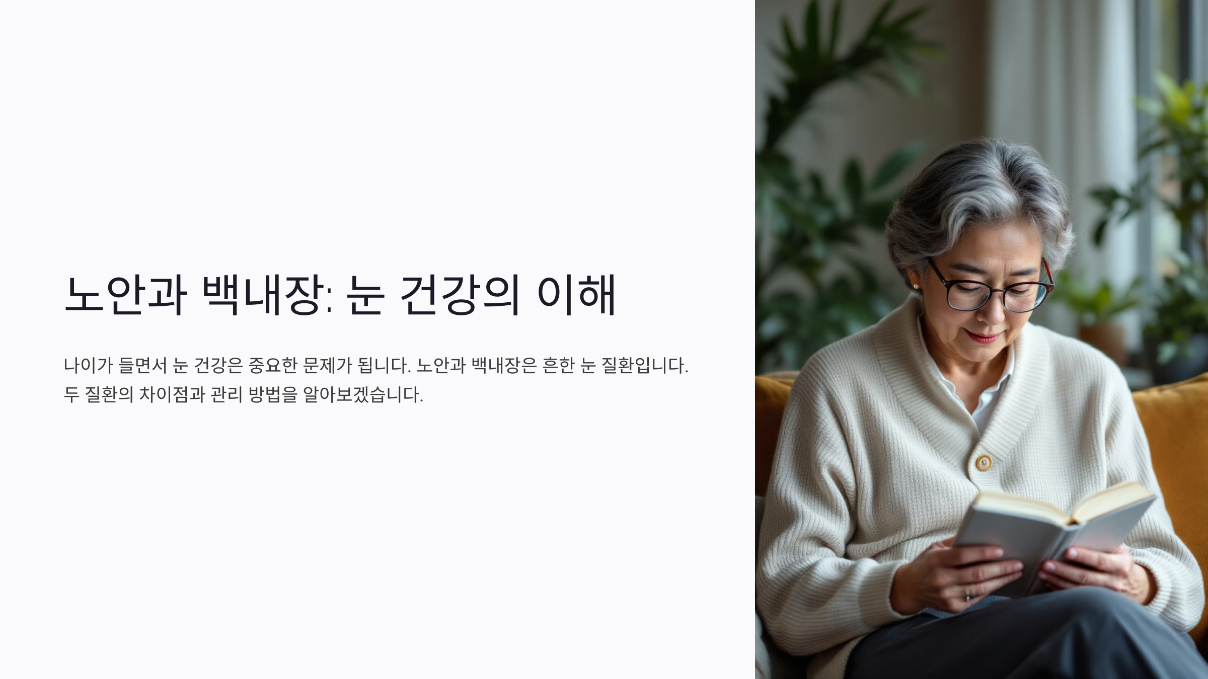 눈 건강은 시간이 지날수록 누구나 신경 써야 하는 중요한 문제예요. 특히 나이가 들면서 자주 나타나는 두 가지 눈 질환이 바로 노안과 백내장이에요. 둘 다 노화와 연관이 있다는 공통점이 있지만, 사실은 아주 다른 질환이랍니다.