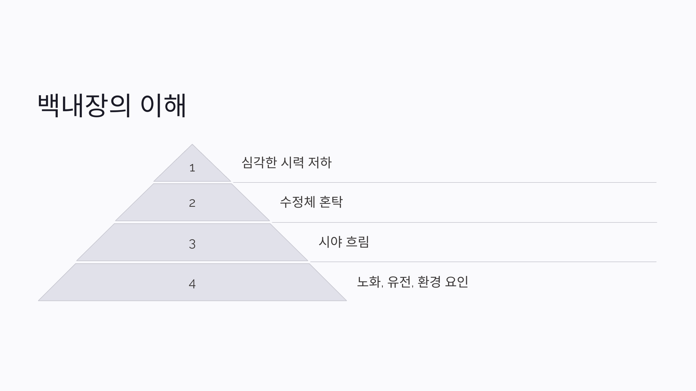 백내장은 눈 안의 수정체가 혼탁해지면서 시야가 흐려지는 질환이에요. 노안과 달리, 백내장은 심각해지면 일상생활에 큰 불편함을 줄 수 있어요. 수정체는 원래 투명한 상태를 유지하며 빛을 통과시키지만, 백내장이 생기면 이 과정에 문제가 생기게 돼요.