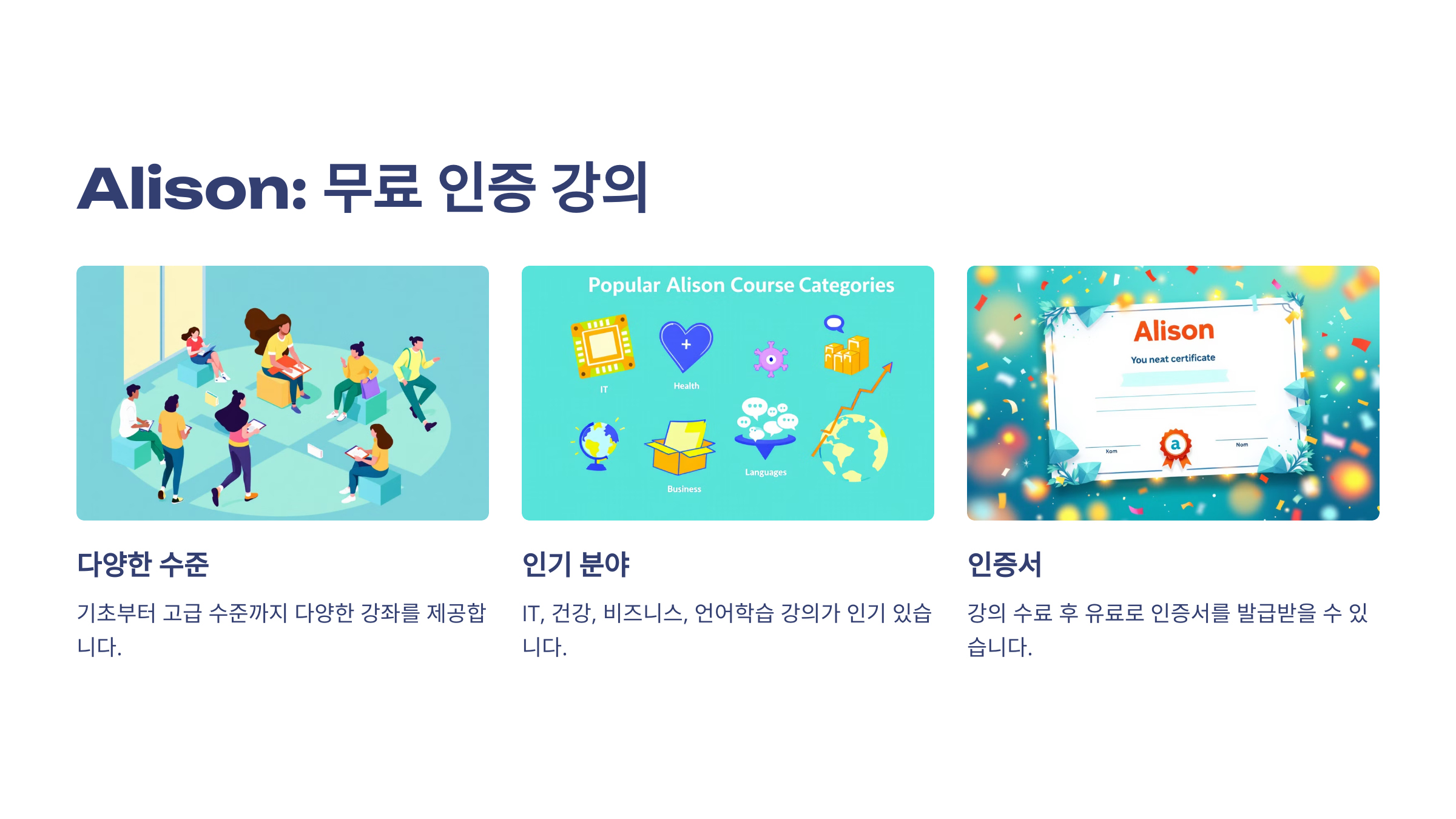 Alison은 무료 인증 강의를 제공하는 교육 플랫폼입니다.