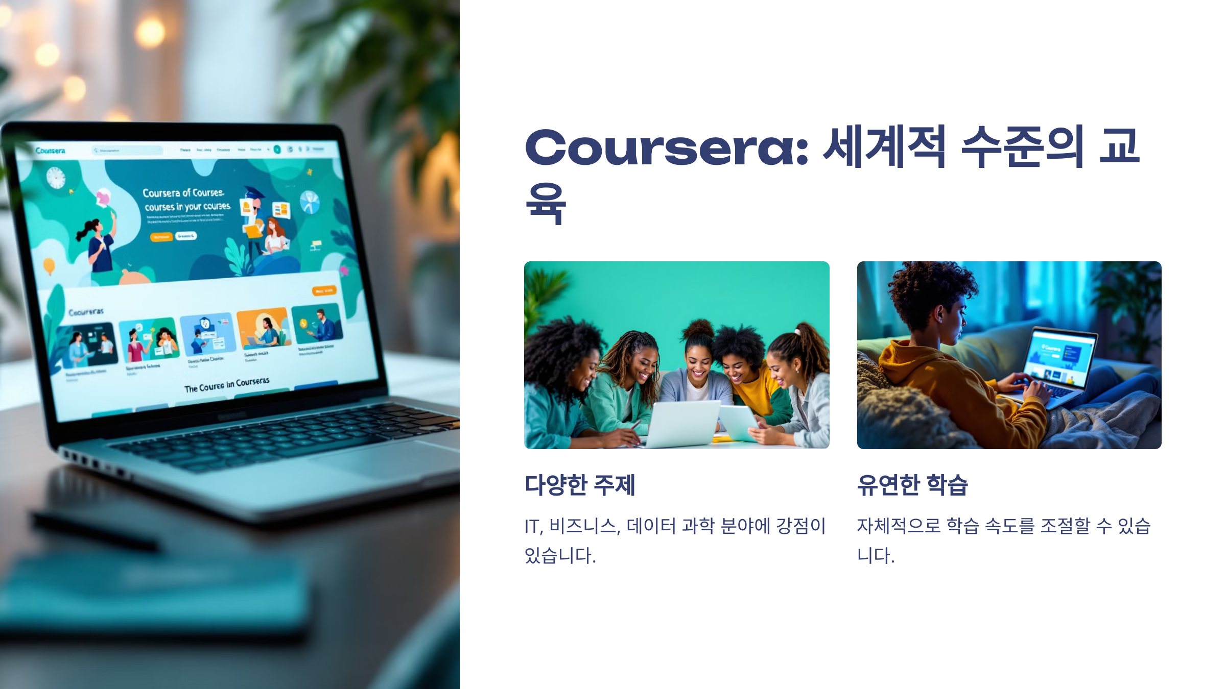 Coursera는 세계 유수의 대학과 기업이 제공하는 강의를 무료로 들을 수 있는 플랫폼입니다.