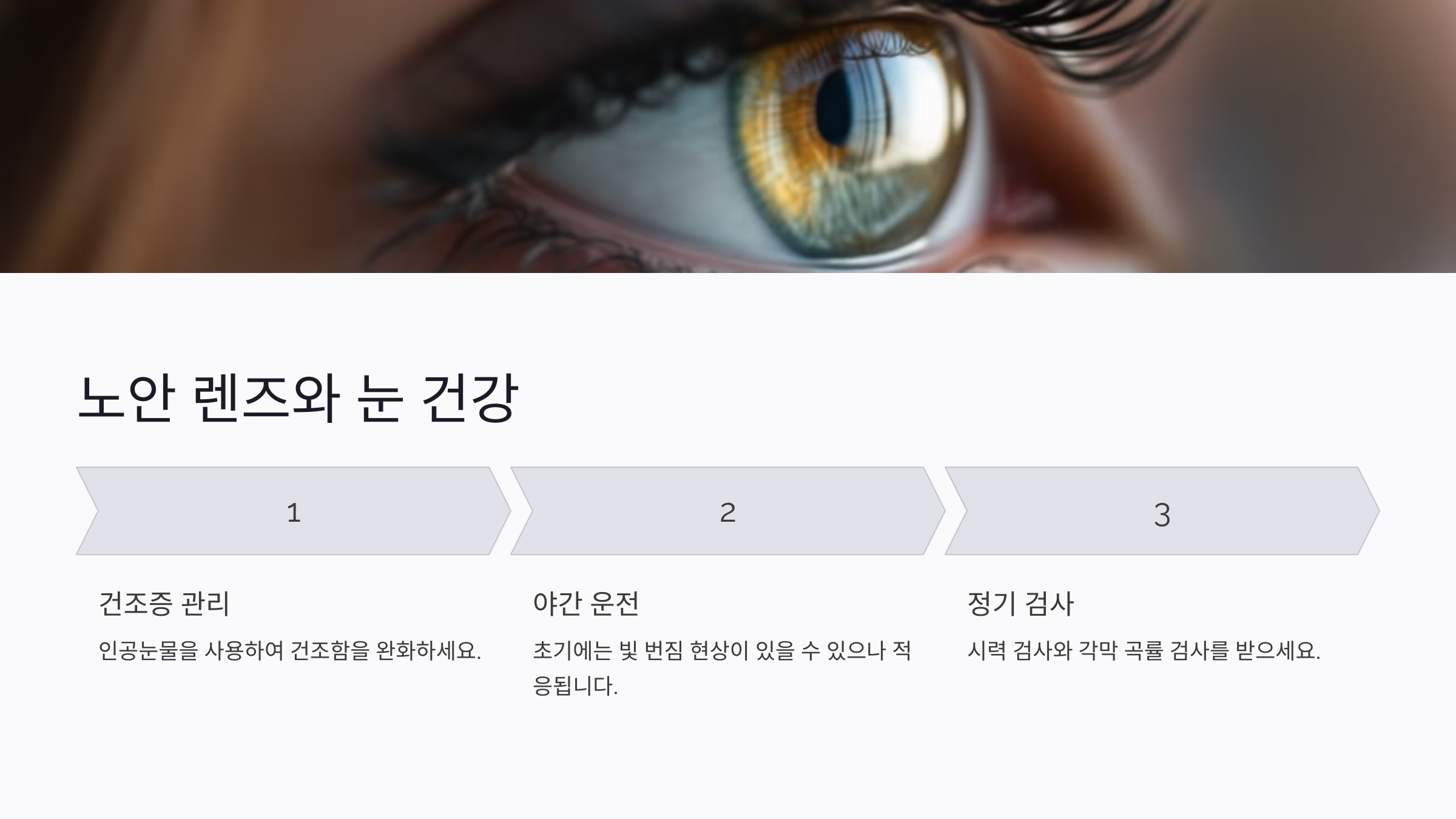 1. 정기 검진: 노안은 시간이 지날수록 진행되기 때문에, 1년에 한 번은 안과를 방문해 렌즈가 현재 상태에 맞는지 확인해야 해요.