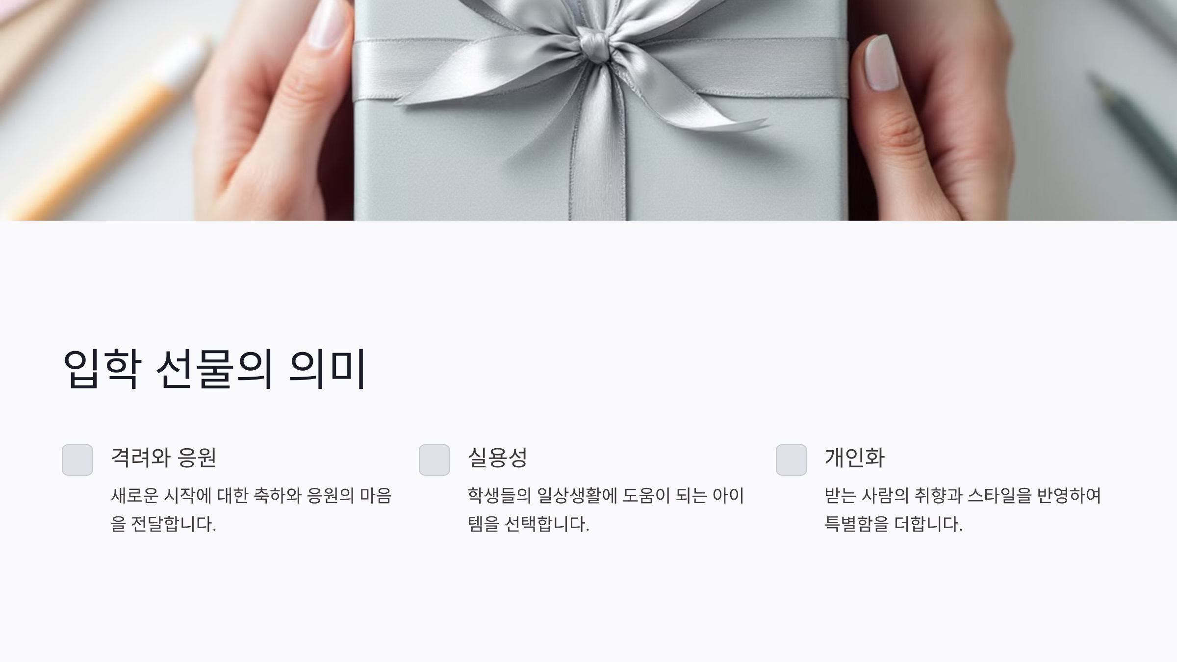 입학 선물은 새로운 시작을 맞이하는 사람에게 격려와 응원의 메시지를 담아 전달할 수 있는 특별한 기회예요. 초등학생부터 대학생까지, 각 나이대에 맞는 선물을 통해 학교생활에 대한 기대감을 높이고, 새로운 환경에서 자신감을 가질 수 있도록 도와줄 수 있답니다.