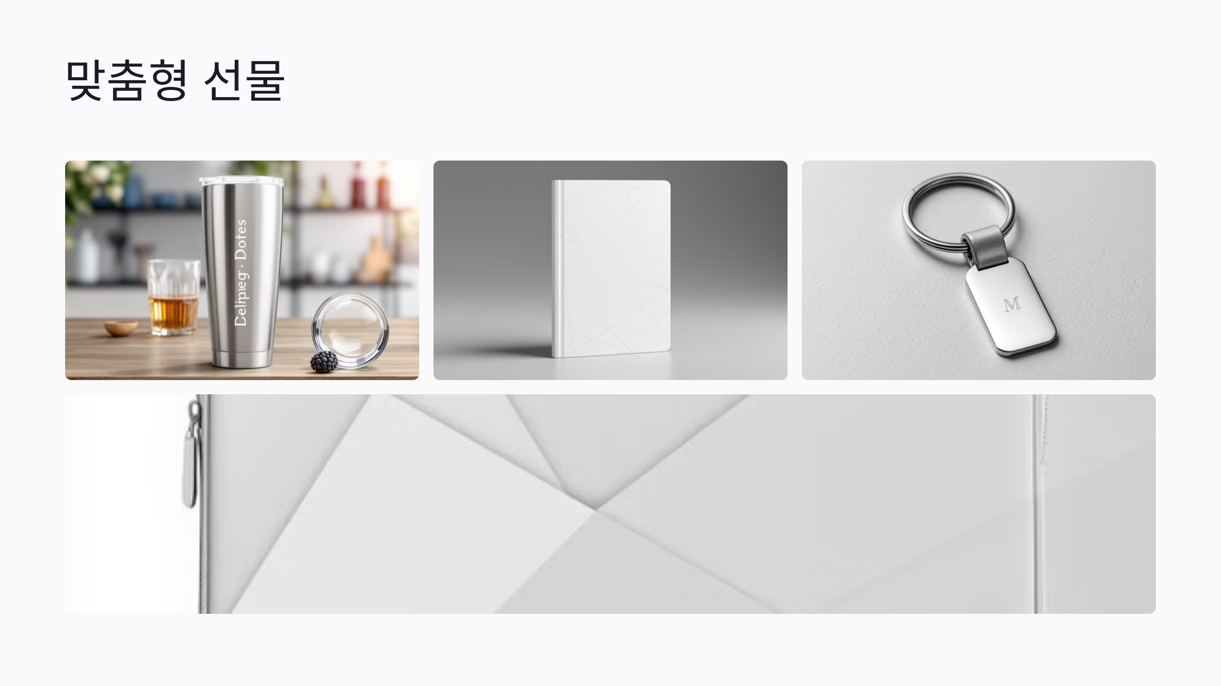 맞춤형 선물은 단순한 물질적인 가치를 넘어, 준비한 사람의 정성과 배려를 고스란히 전달할 수 있어요. 센스 있는 디테일을 더한 선물은 오랫동안 기억에 남는 특별한 순간을 만들어 줄 거예요.