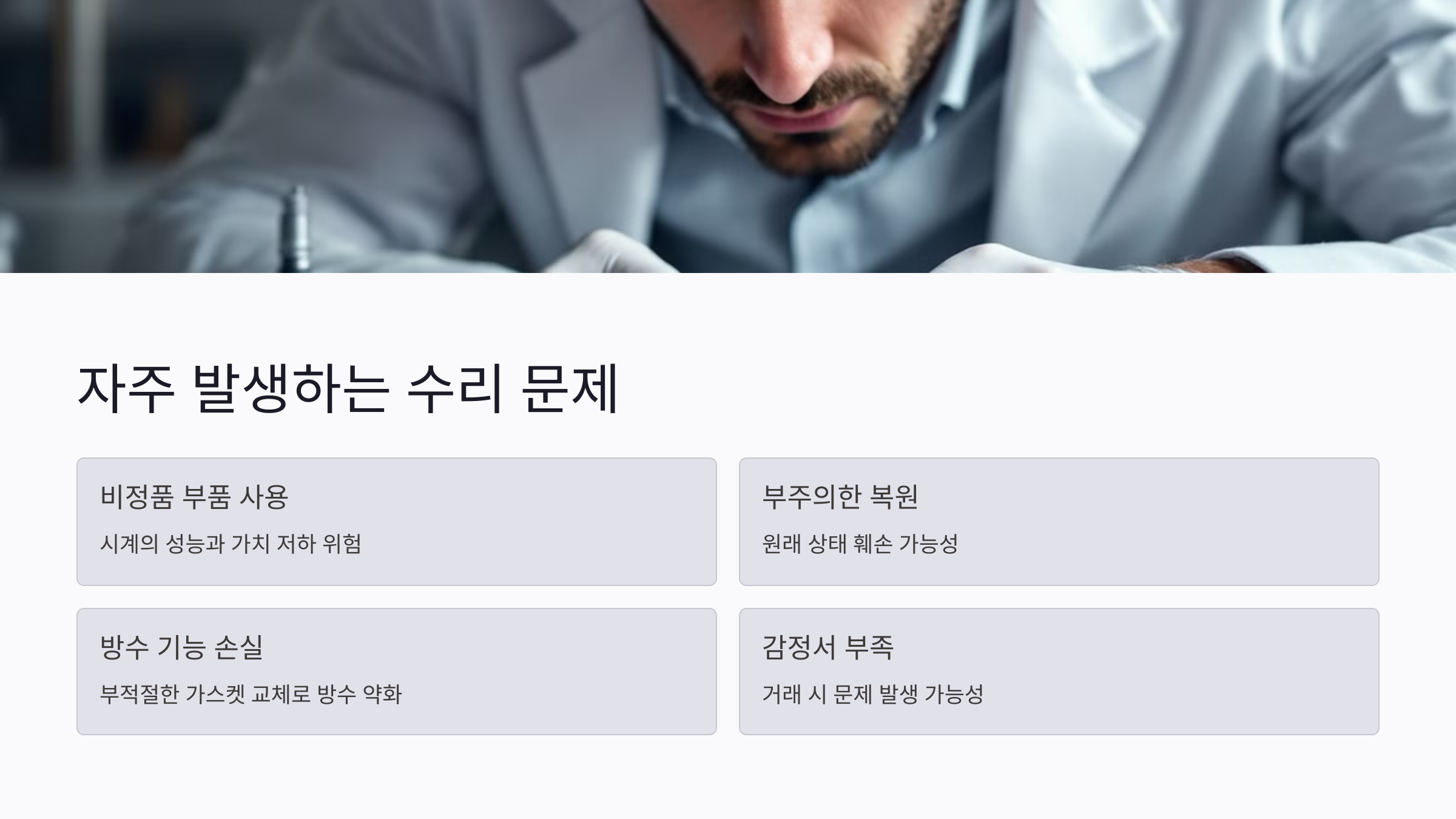 일부 수리점에서는 비용 절감을 위해 비정품 부품을 사용할 수 있어요. 이는 시계의 성능과 가치를 떨어뜨릴 수 있으니, 정품 부품을 사용한다고 보증하는 수리점을 선택하는 것이 중요해요.
