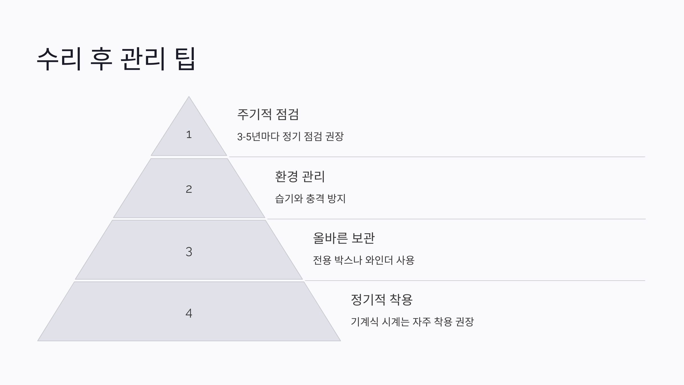 수리 후 명품시계를 오래도록 유지하려면 올바른 관리 방법을 실천해야 해요. 아래 몇 가지 팁을 참고하세요.