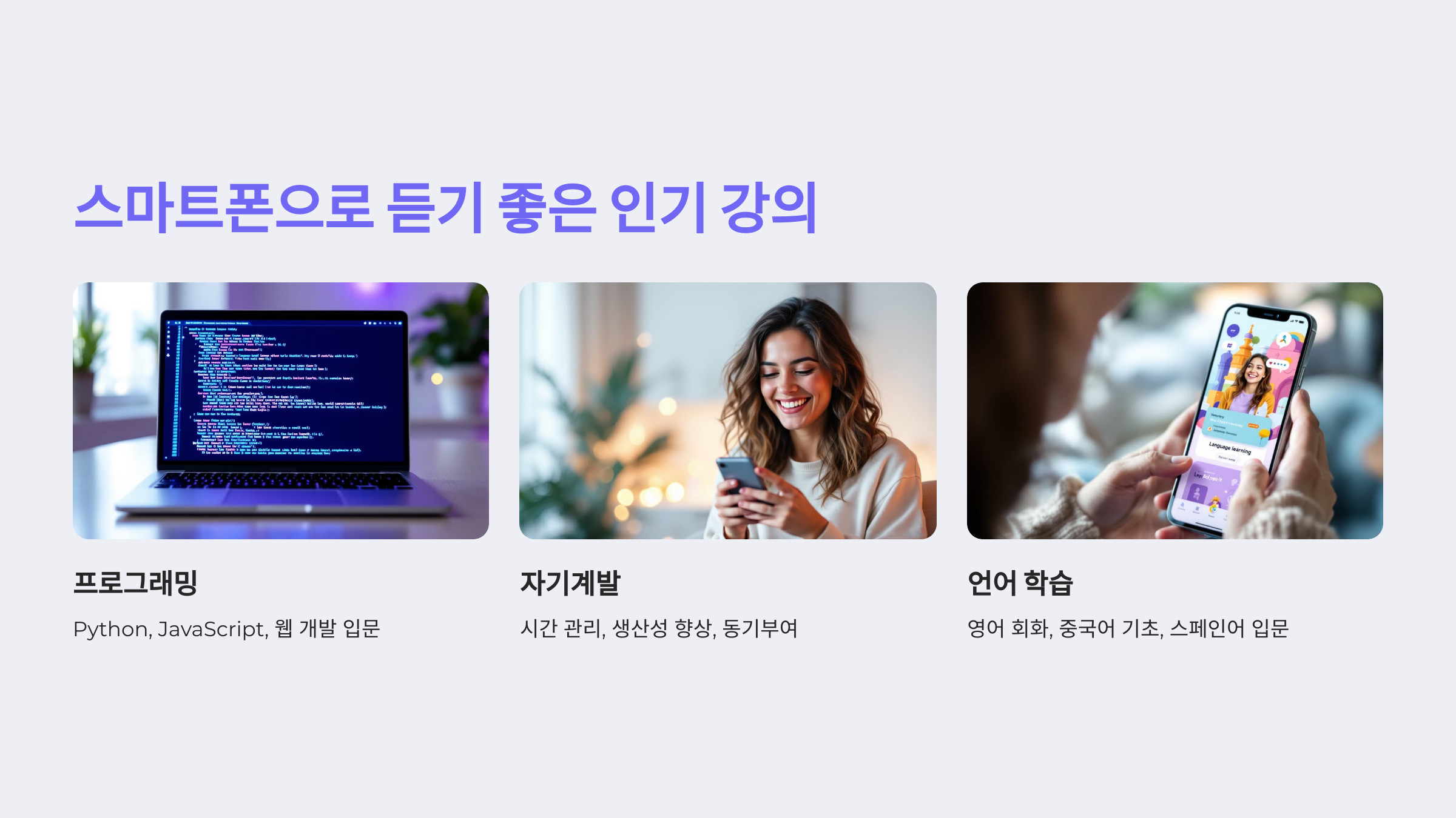 스마트폰으로 온라인 강의를 들을 수 있는 시대에, 모바일 학습은 언제 어디서나 지식을 쌓을 수 있는 강력한 도구가 되었습니다. 이 글에서는 모바일에서 활용하기 좋은 온라인 강의 플랫폼, 인기 강의, 그리고 모바일 학습을 최적화하는 방법을 소개합니다. 스마트폰만으로도 효과적인 학습을 시작할 수 있습니다.